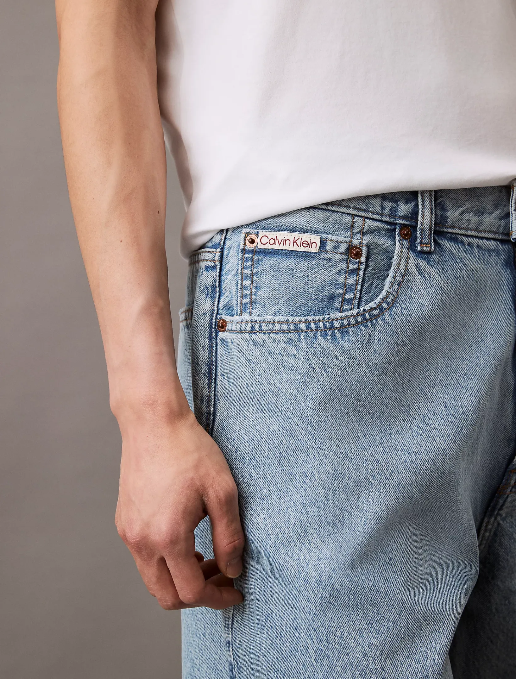 • Metallelemente und Leder-Badge mit Calvin Klein Logo
