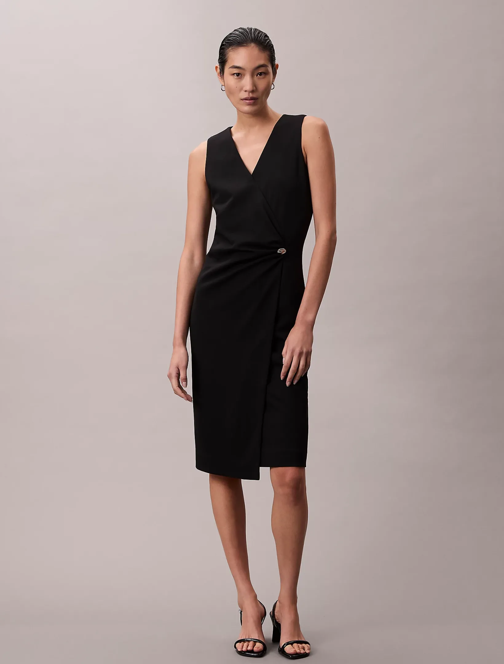 • Stretch-Crêpe-Stoff in einem Faux-Wrap-Design