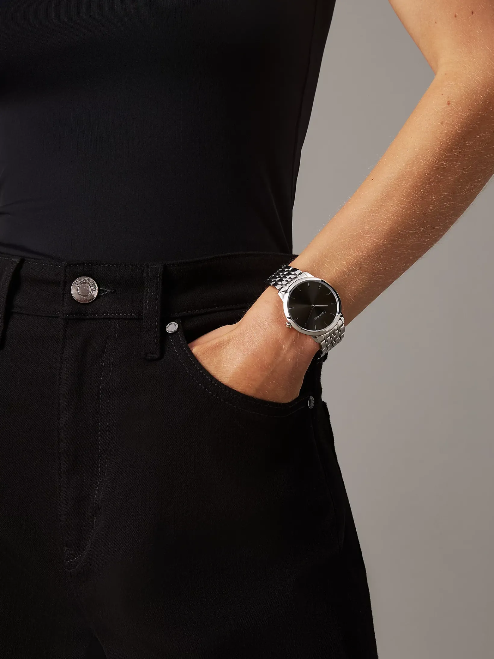 • Calvin Klein Logo-Style auf dem Zifferblatt, der Schließe und dem Gehäuse