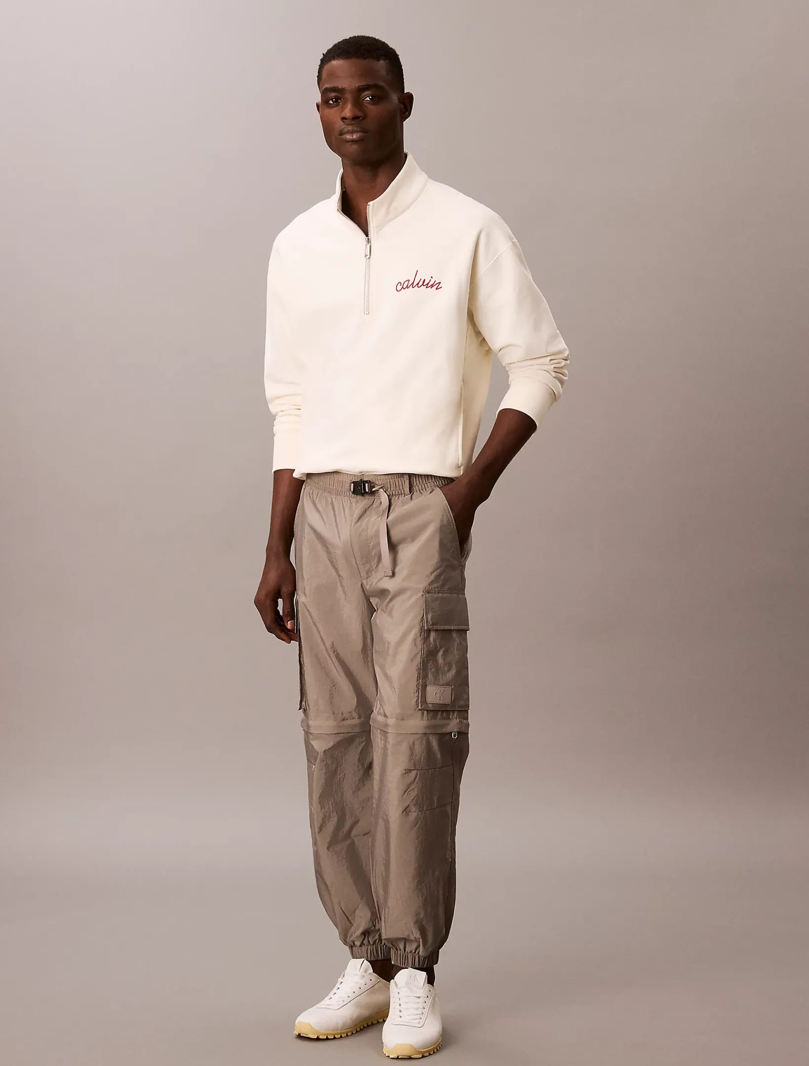 • Calvin Klein Logo-Badge auf der Tasche am Bein