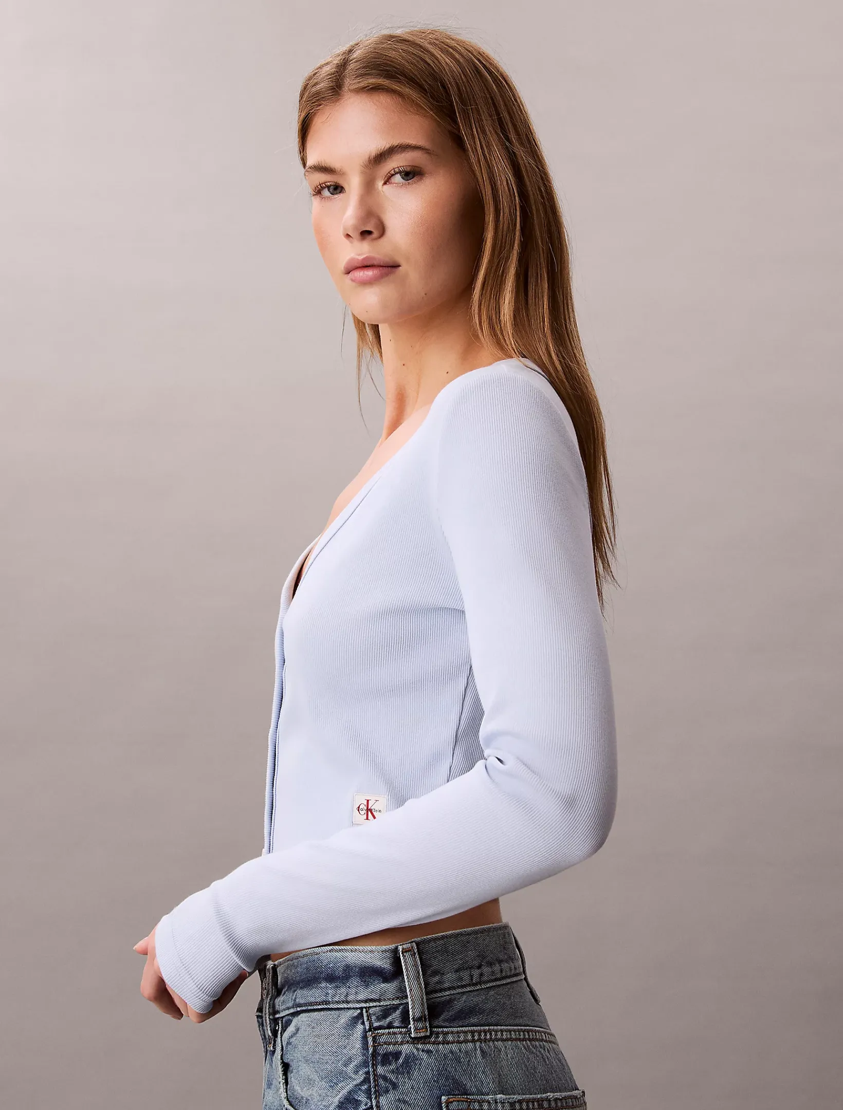 Calvin Klein Cropped Cardigan aus gerippter Baumwolle^Damen T-shirts & Tops|Strickdesigns