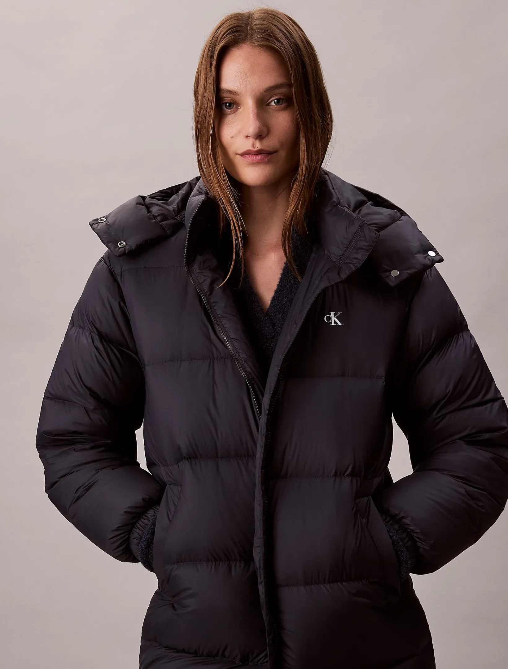 • Stehkragen mit abnehmbare Kapuze