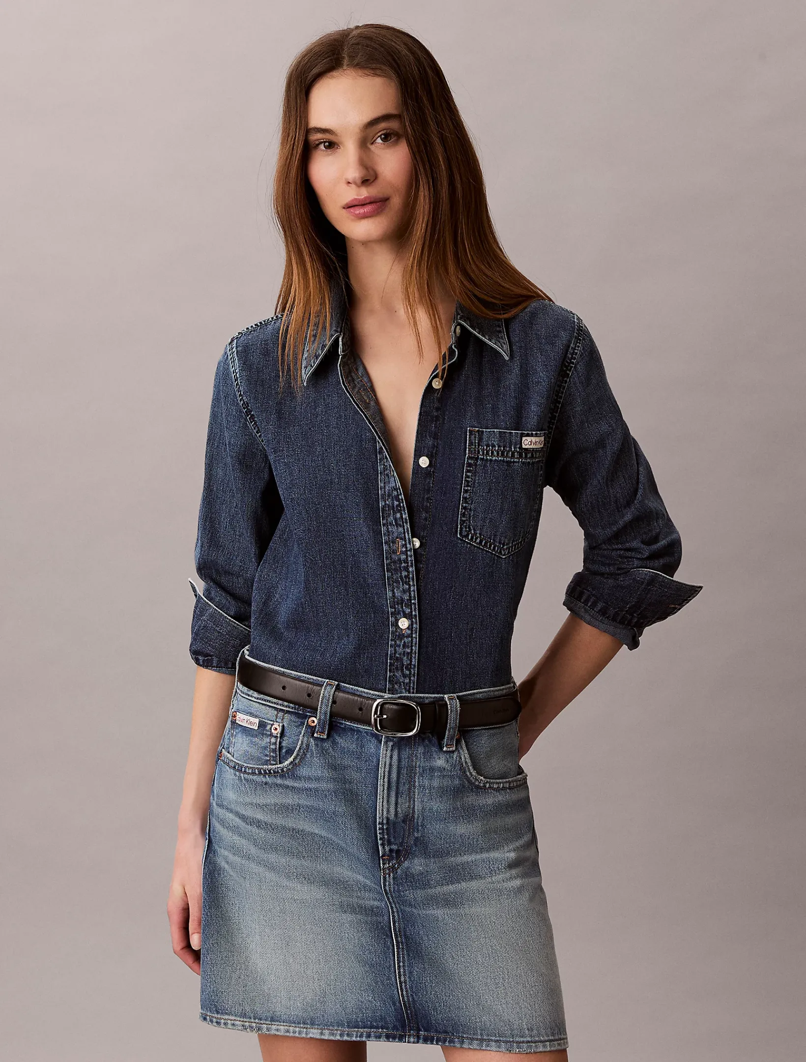 • Metallelemente und Leder-Badge mit Calvin Klein Logo