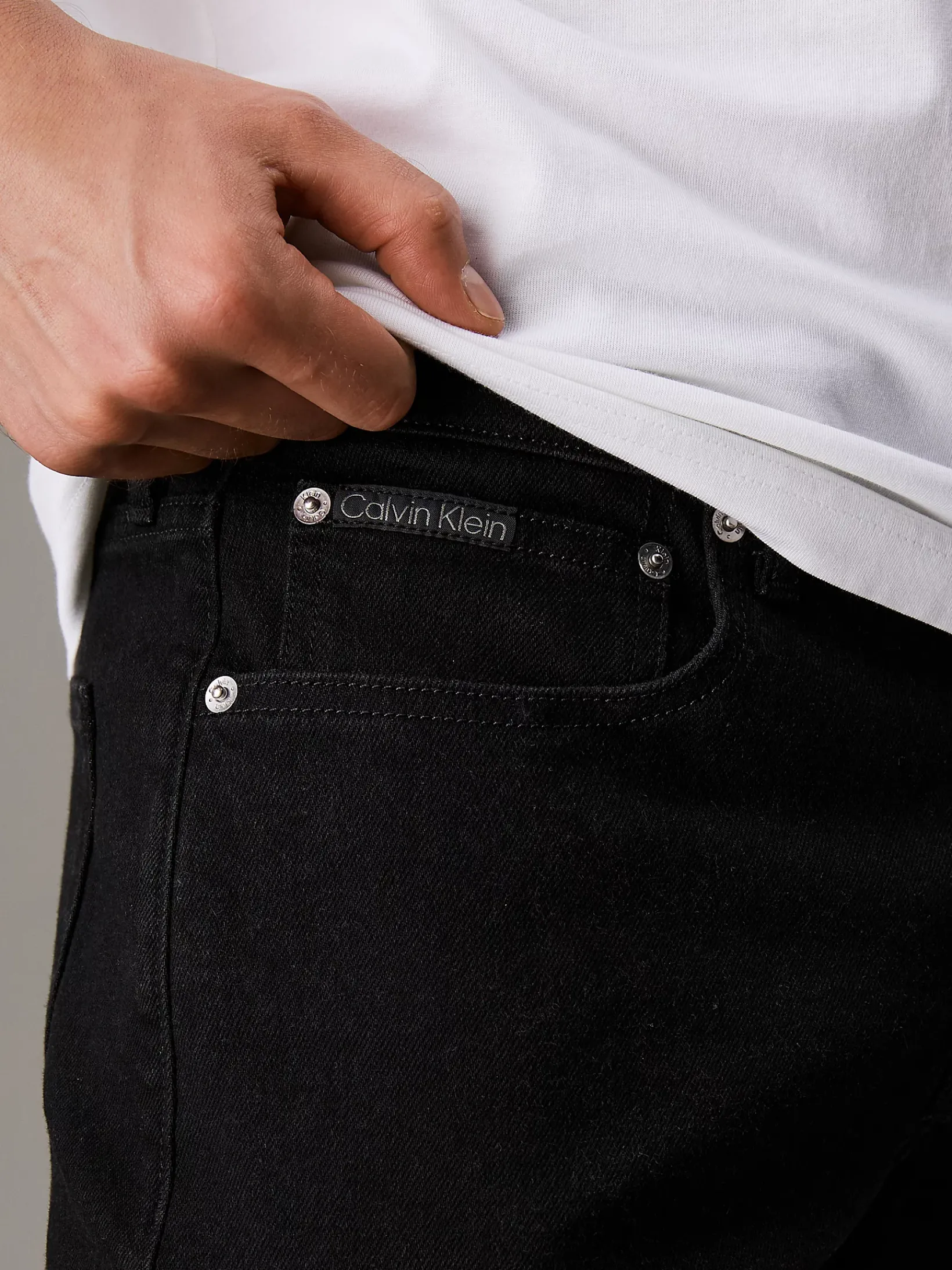 • Metallelemente und Leder-Badge mit Calvin Klein Logo