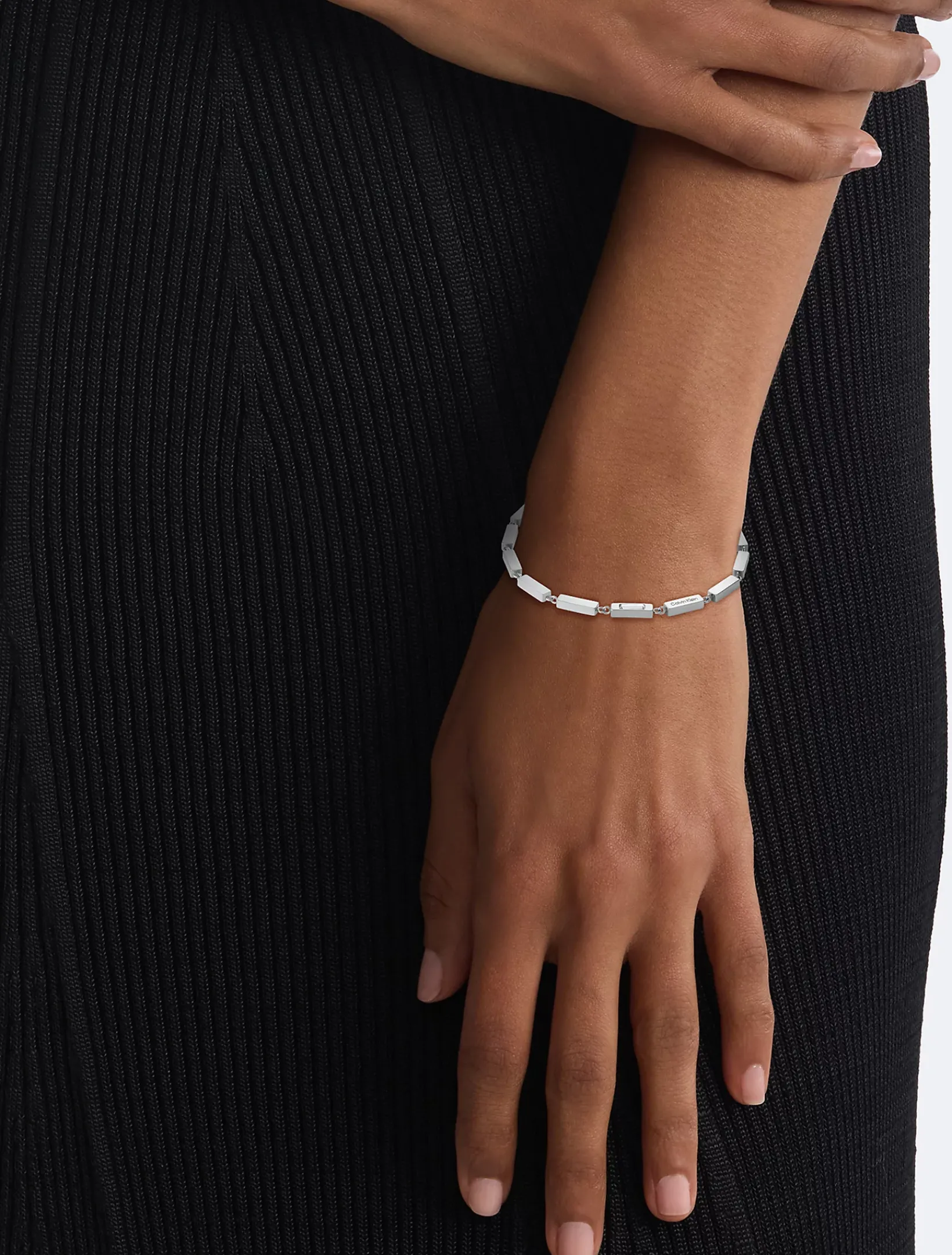Die schlanken, rechteckigen Formen der CK Essential Links Kollektion verleihen sowohl legeren als auch formellen Looks eine raffinierte Struktur. Jedes Item ist mit dezenten Kristallverzierungen versehen, die für einen leichten Schimmer sorgen.
