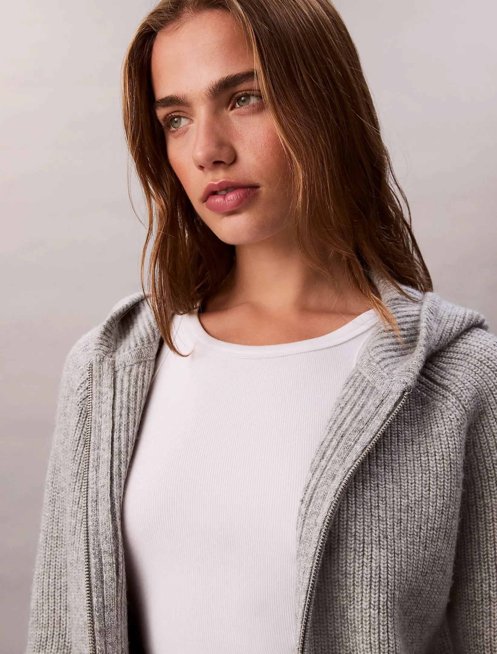 • Ärmelbündchen und Saum mit geripptem Strickbesatz