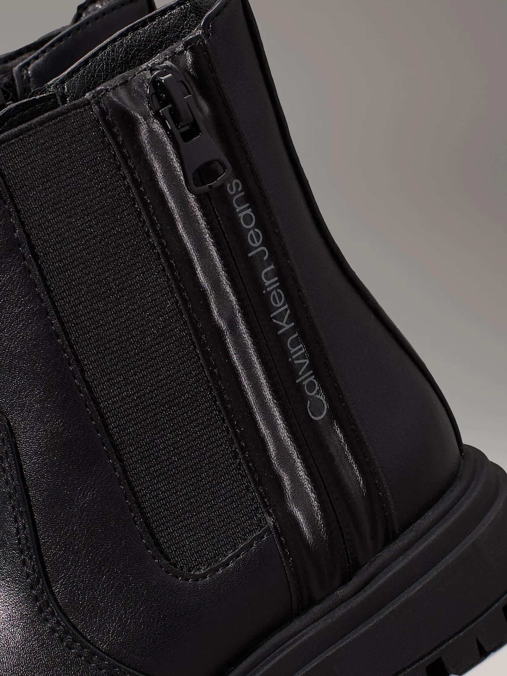 • Calvin Klein-Logo entlang des Reißverschlusses und der Ferse