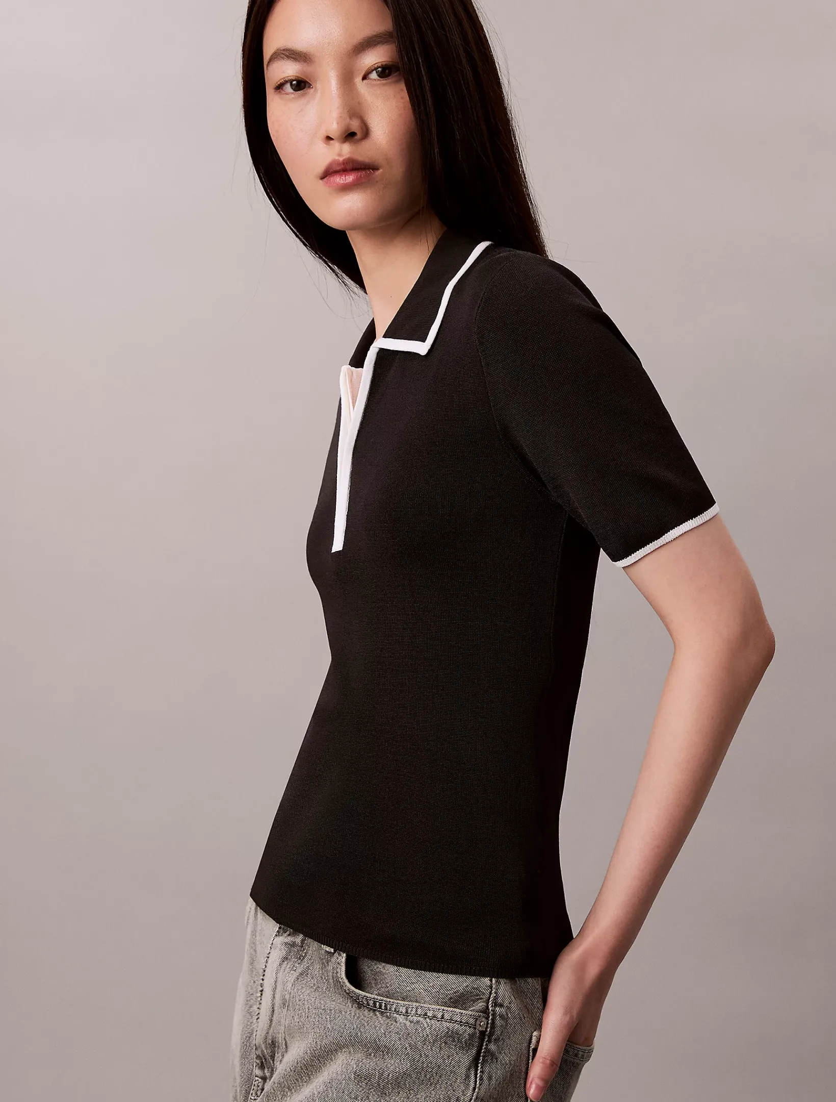 • Polo-Kragen und kurze Ärmel