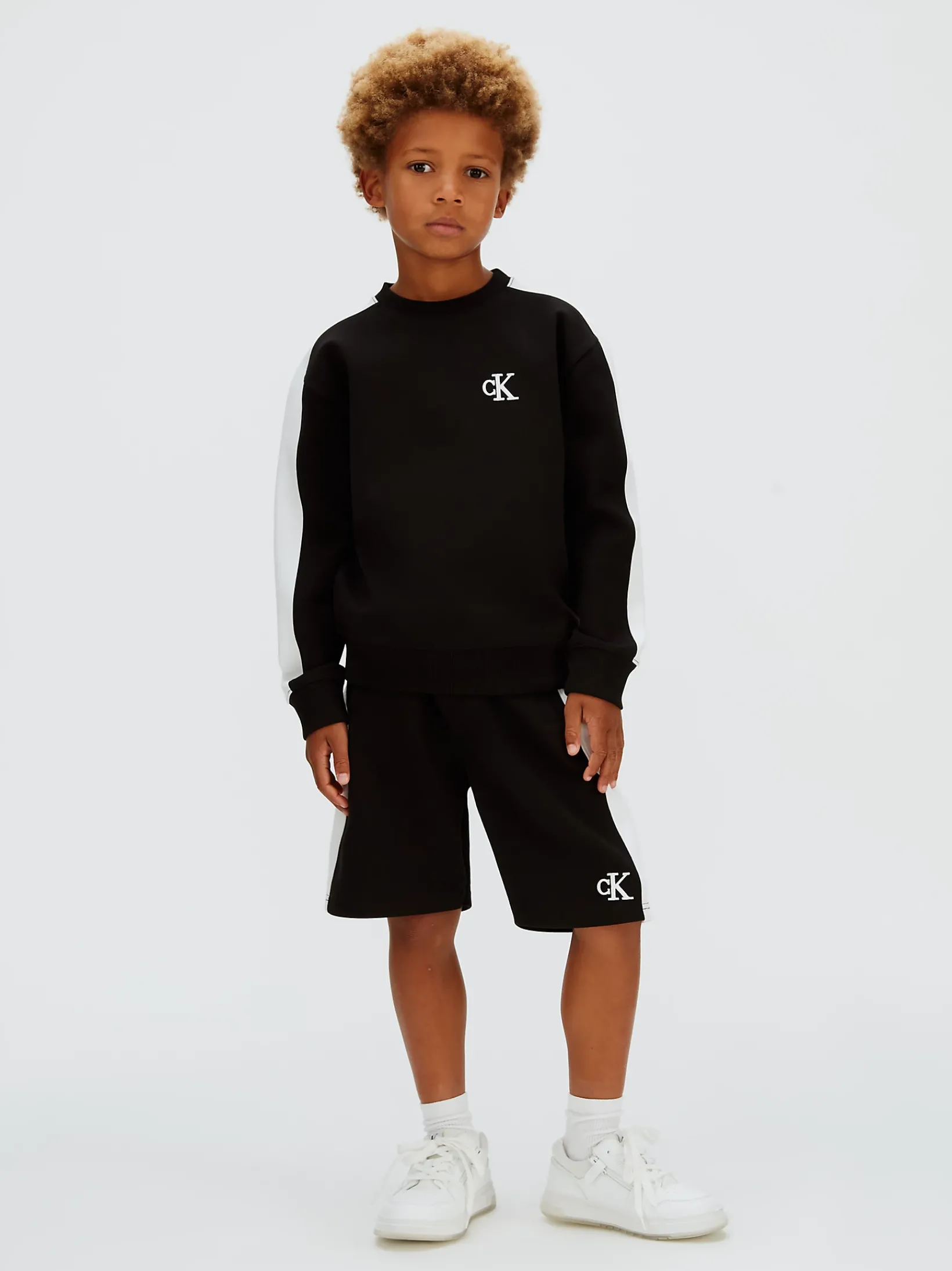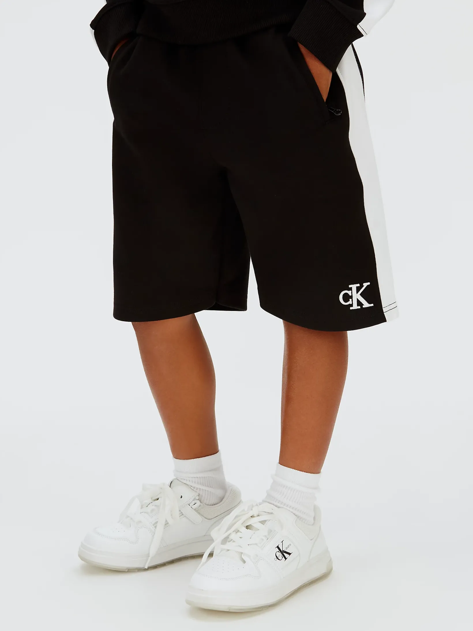 • kontrastierende CK Logo-Stickerei auf einem Bein