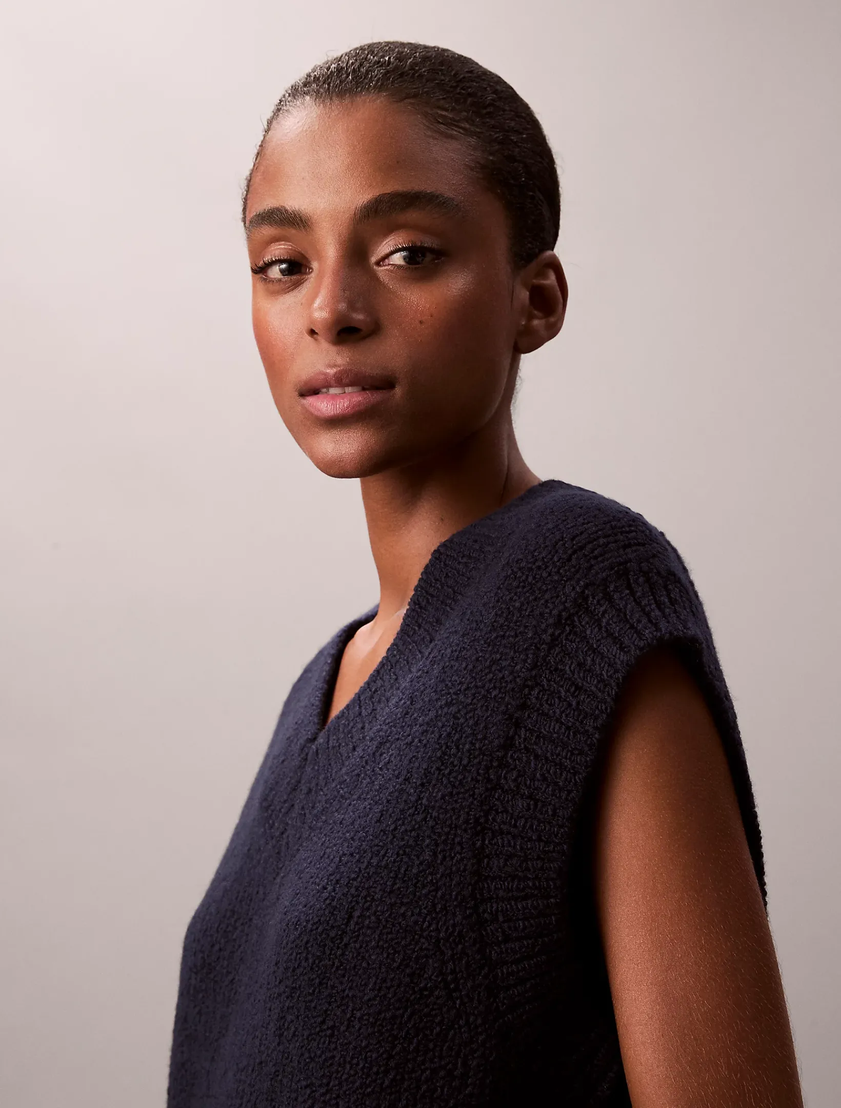 • ärmellos, V-Ausschnitt