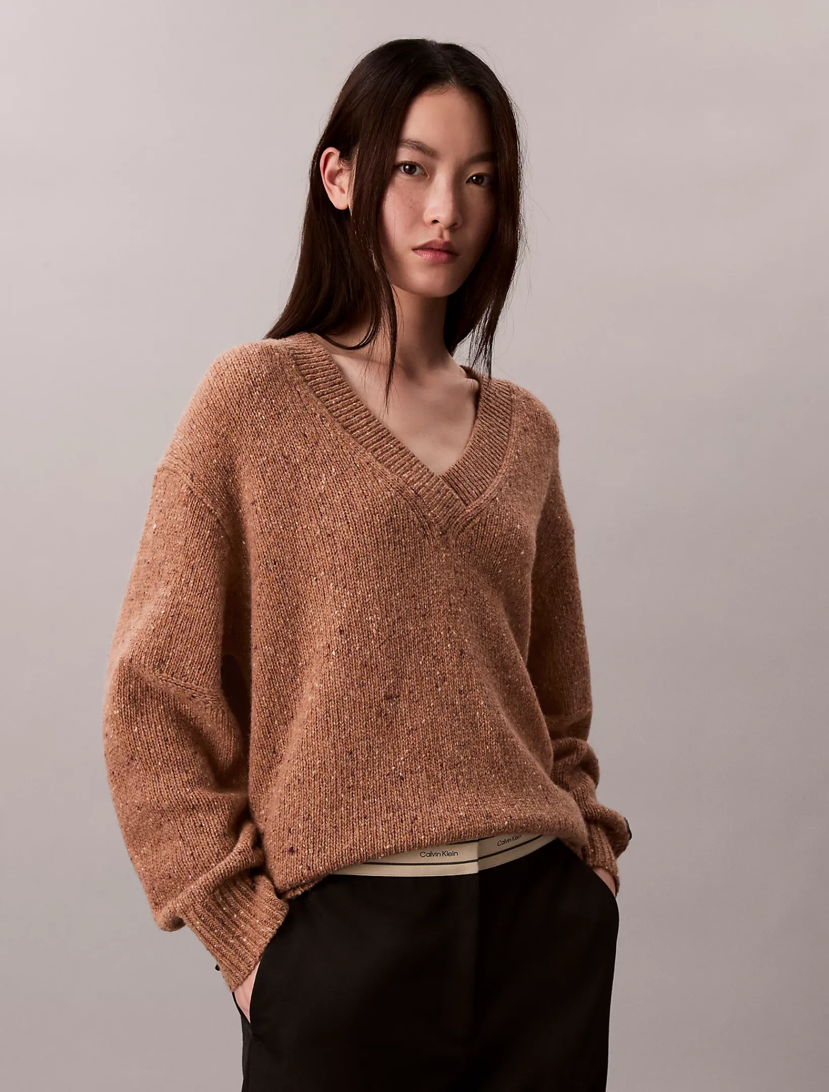 • lange Ärmel, V-Ausschnitt