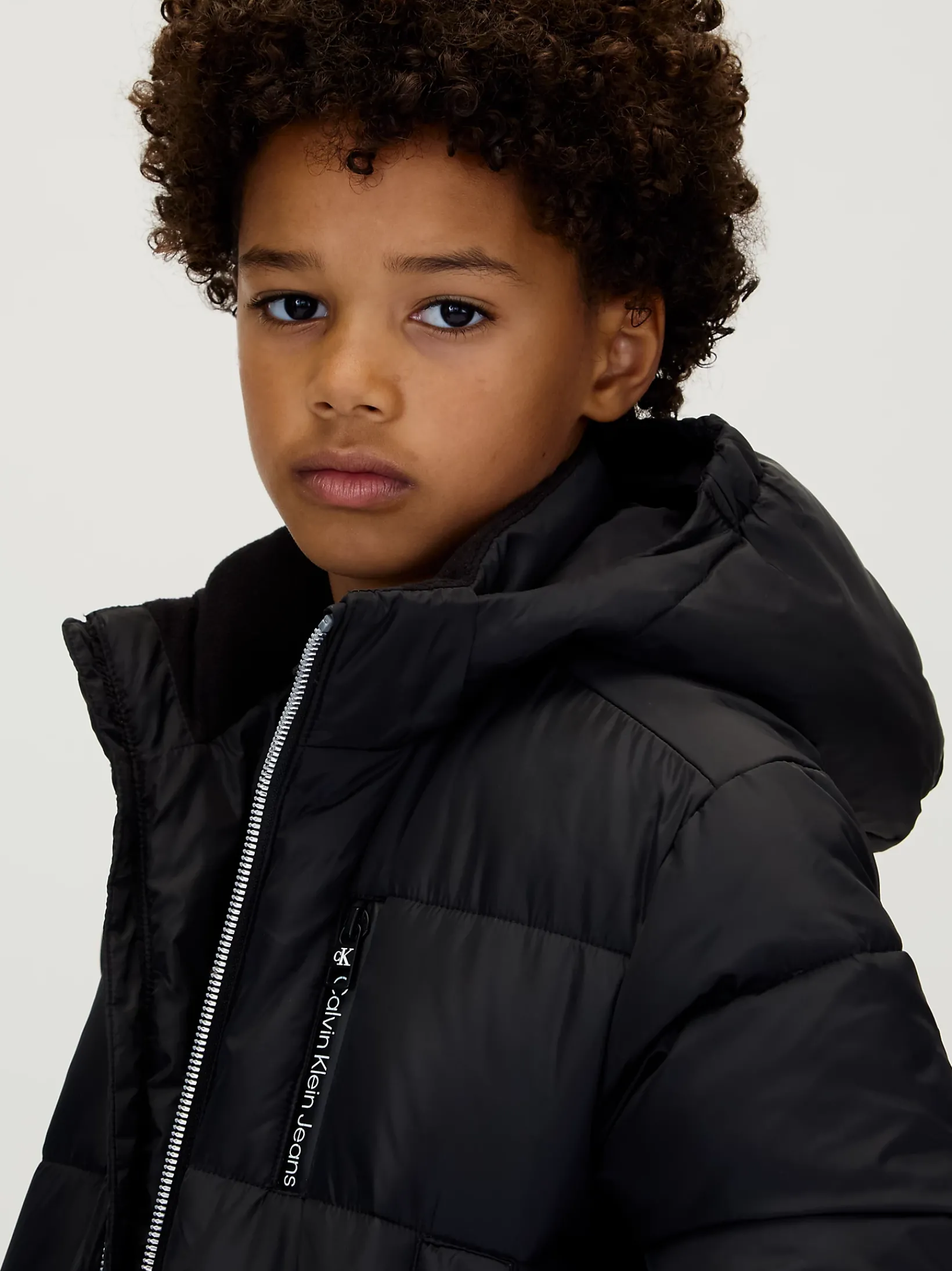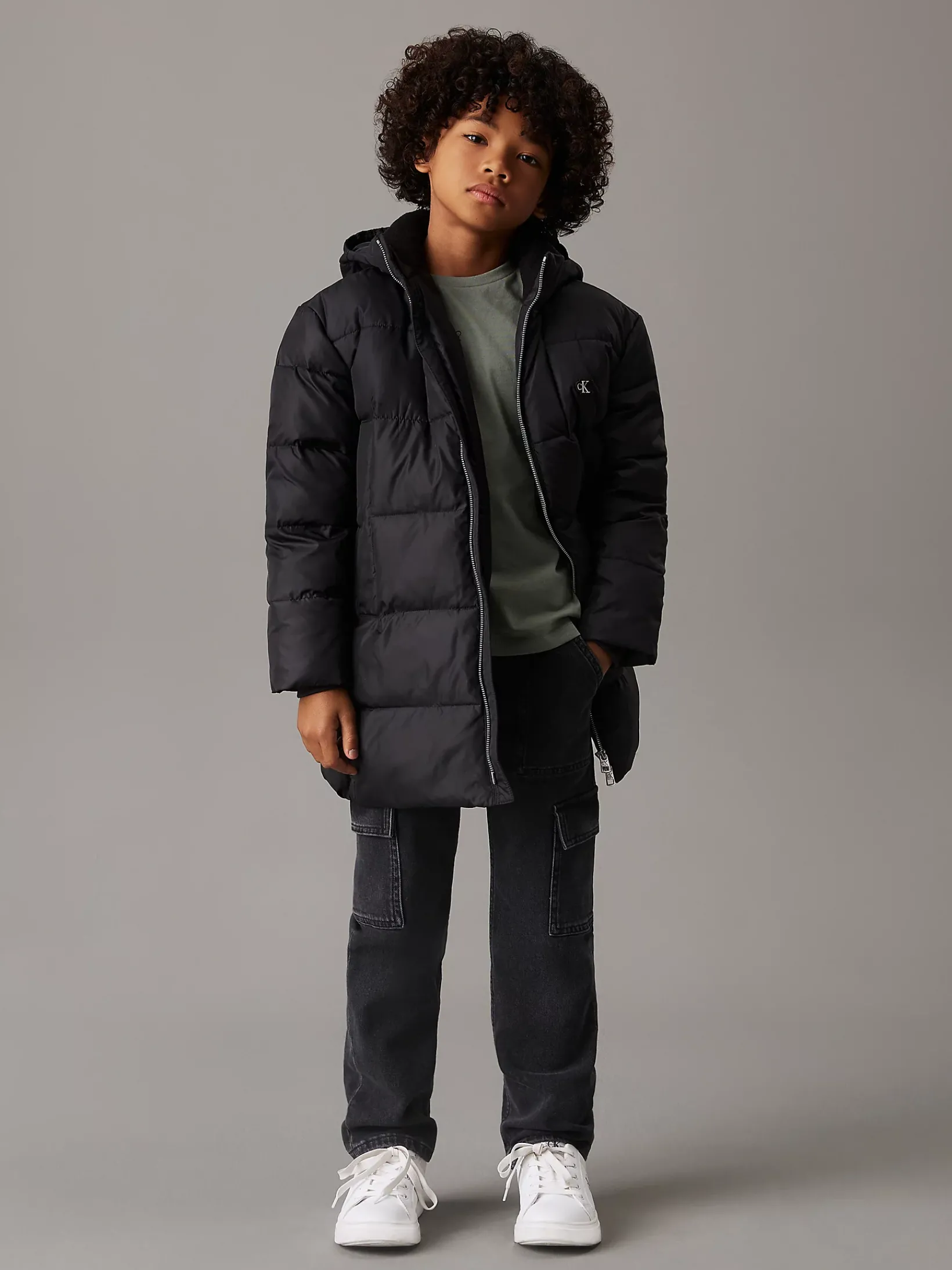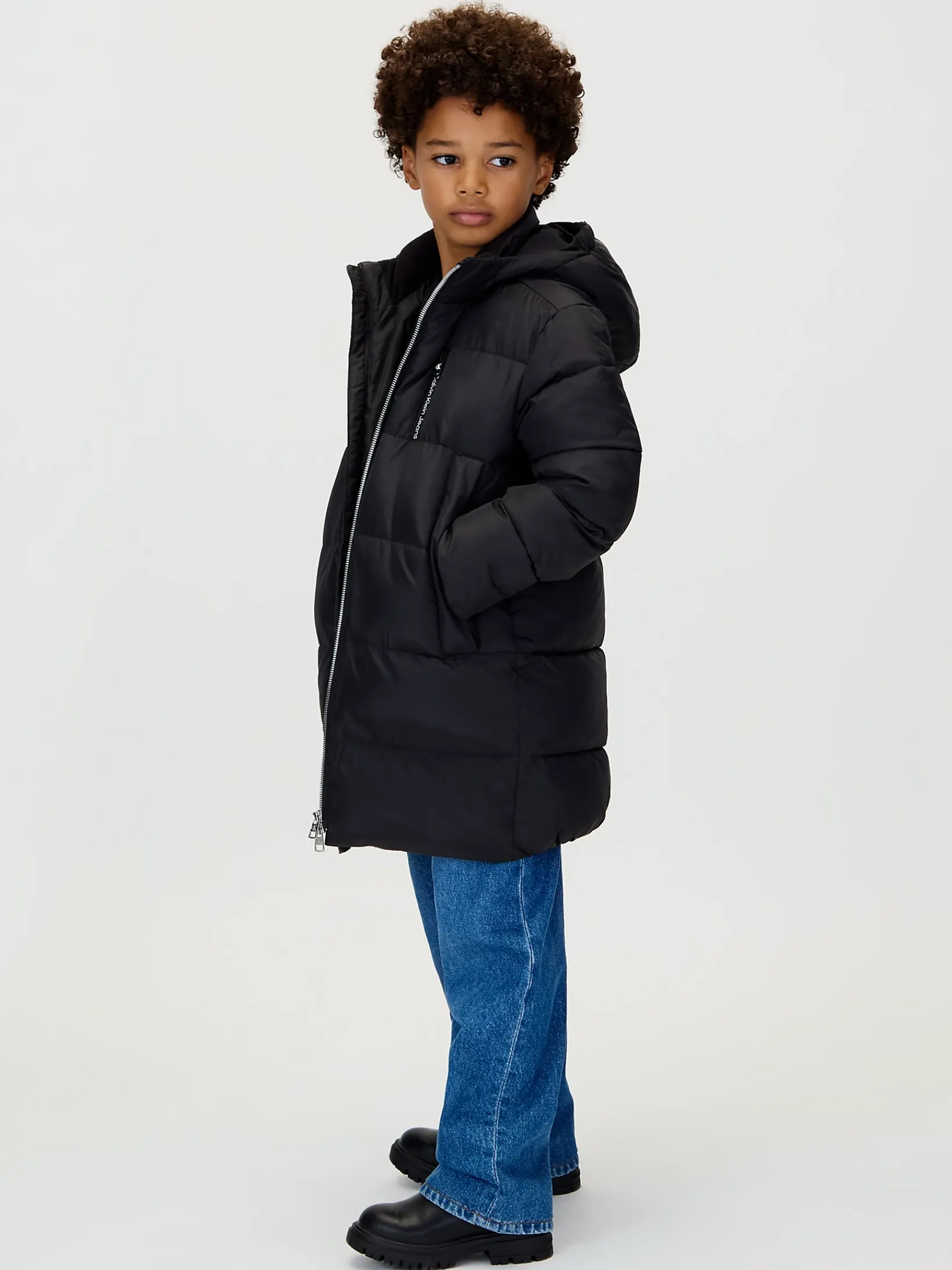 • vertikaler Calvin Klein Jeans Logo-Schriftzug auf der Brust