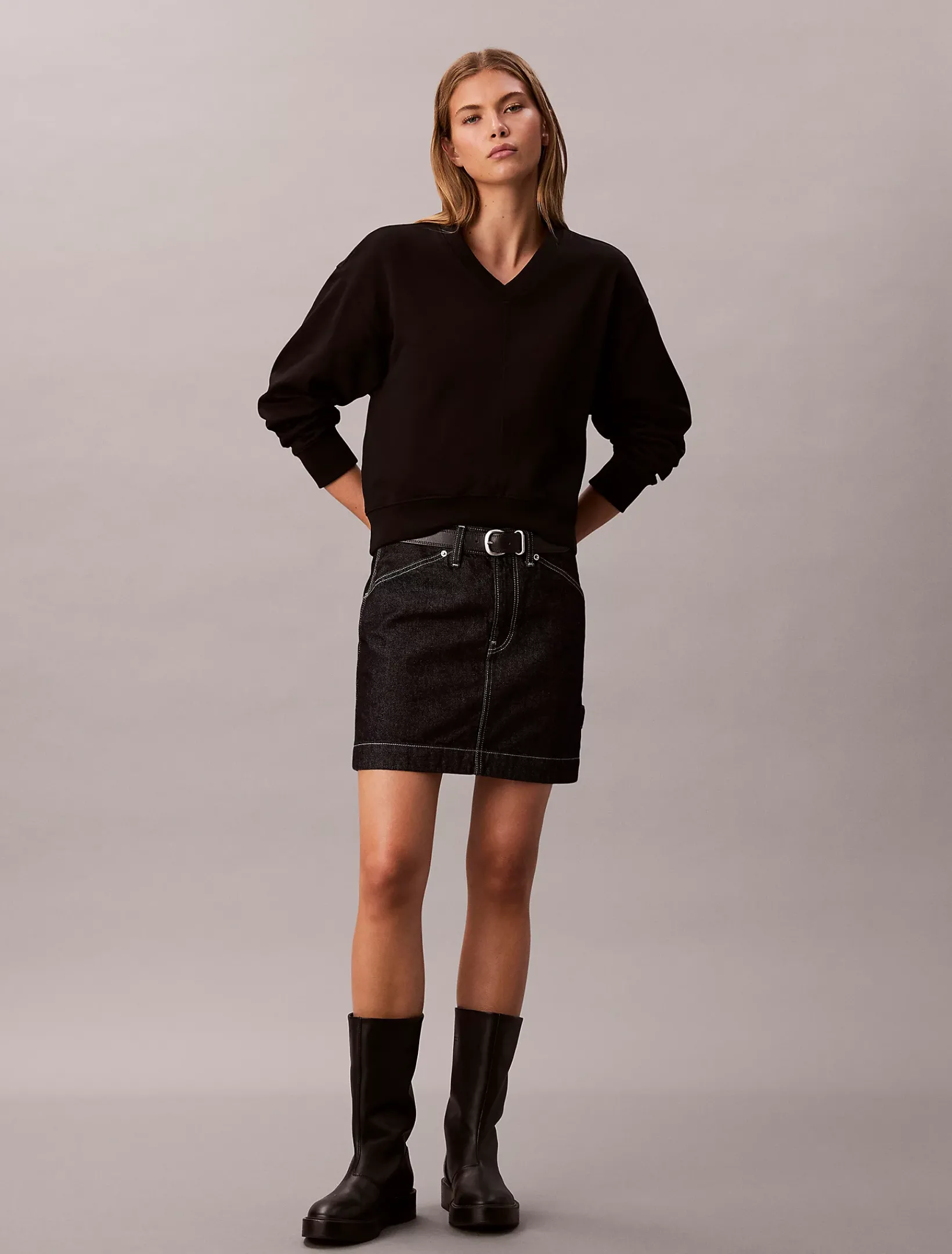 • lange Ärmel, V-Ausschnitt