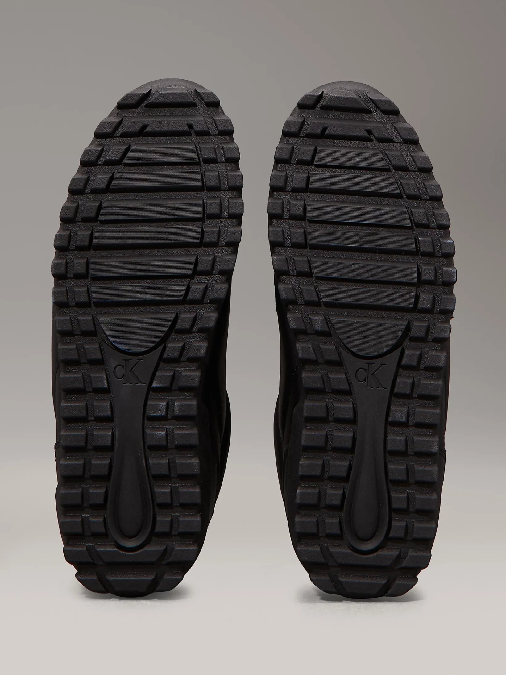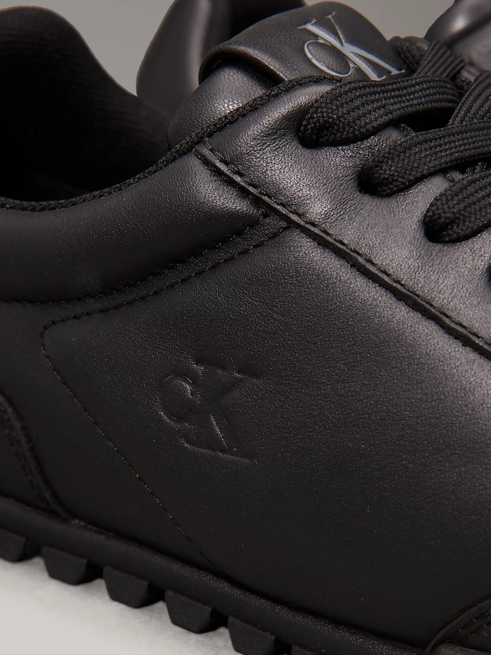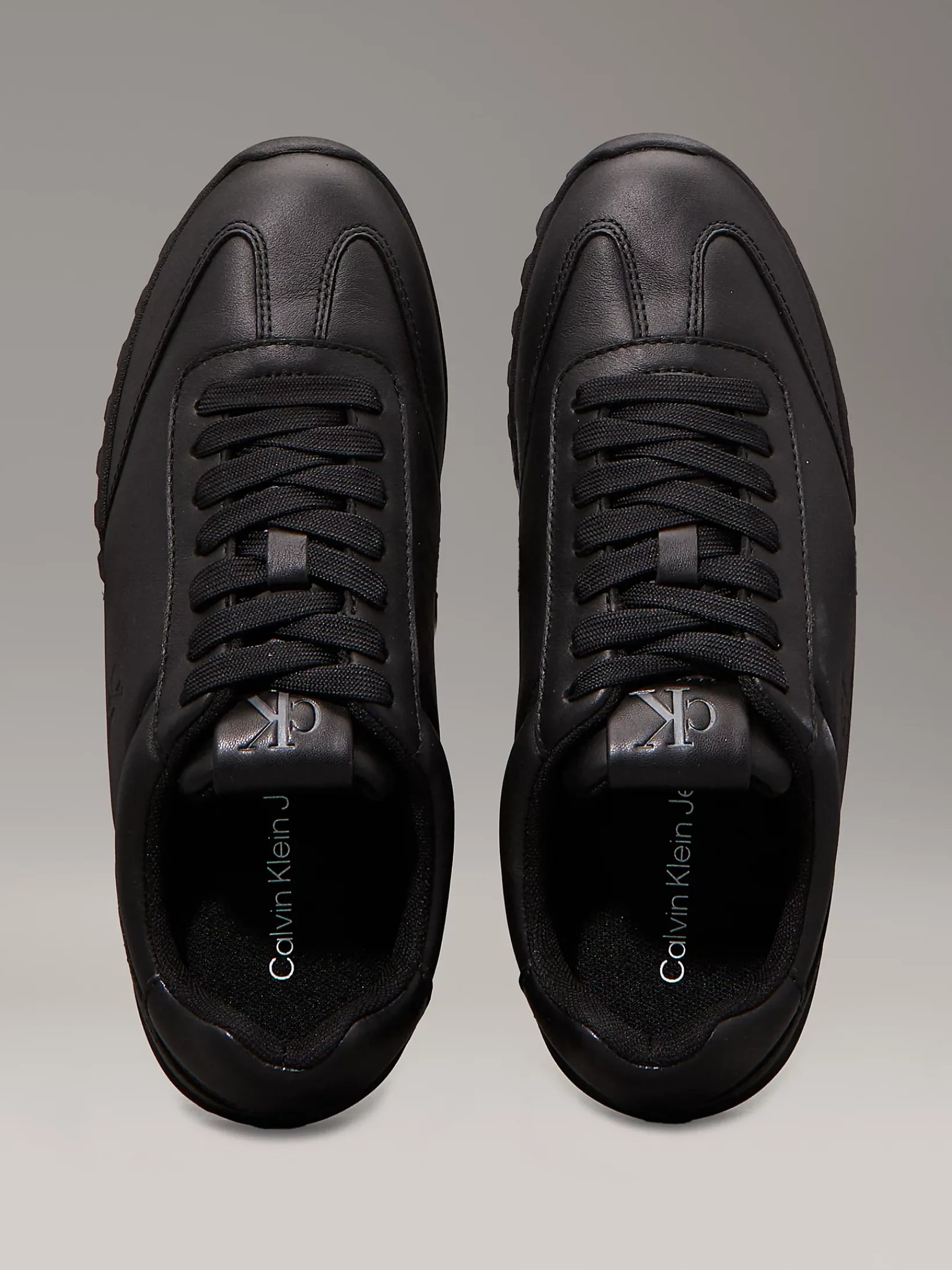 • klassisches Calvin Klein Monogramm auf der Lasche, der Ferse und an der Seite