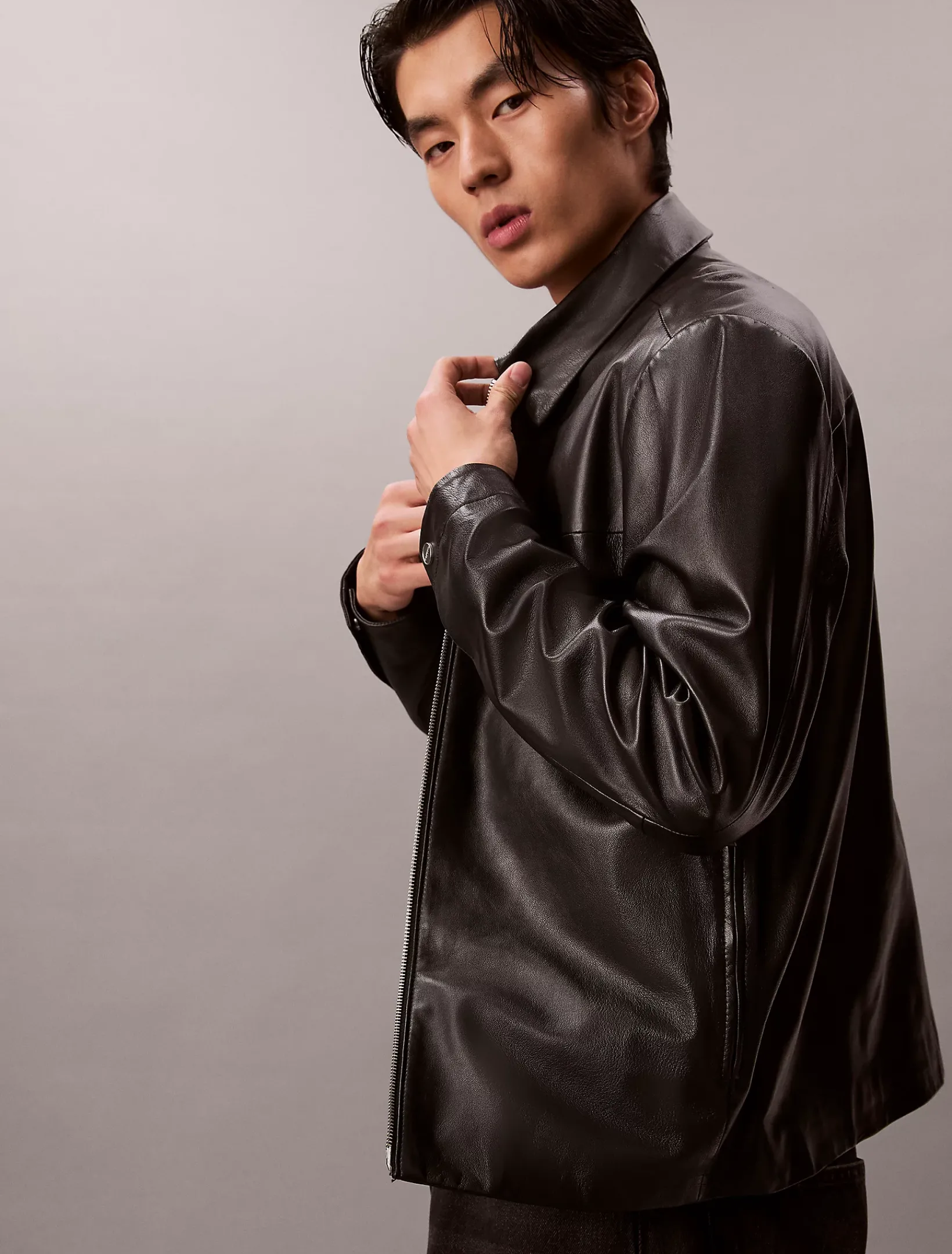 Diese Jacke ist aus geschmeidigem, fein genarbtem Leder gefertigt, hat eine bequeme Passform und lässt sich problemlos über Frühlings- und Herbstoutfits tragen.