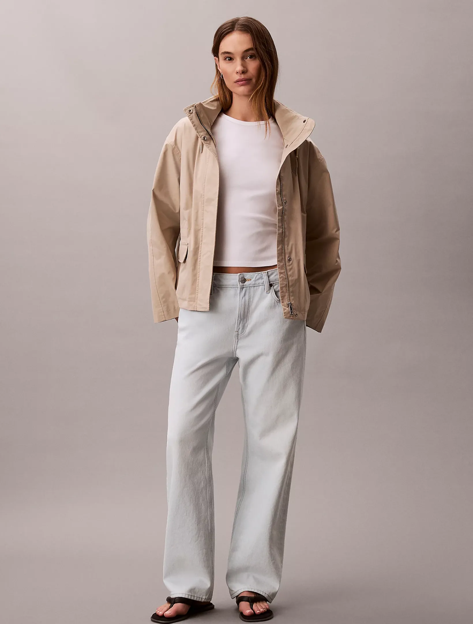 • Reißverschluss vorne, verdeckter Knopfverschluss