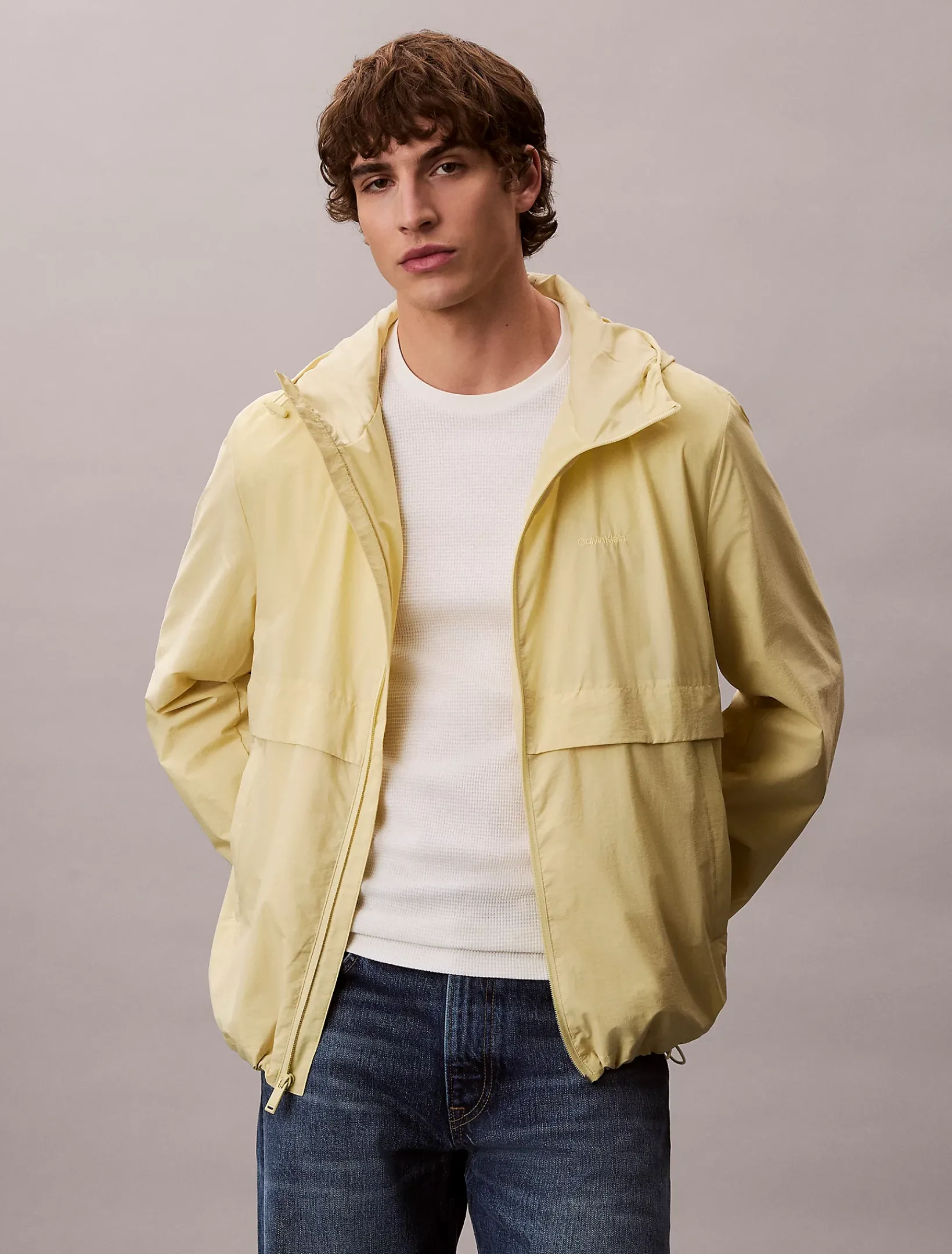 • Tunnelzug-Kapuze und vorgeformte lange Ärmel