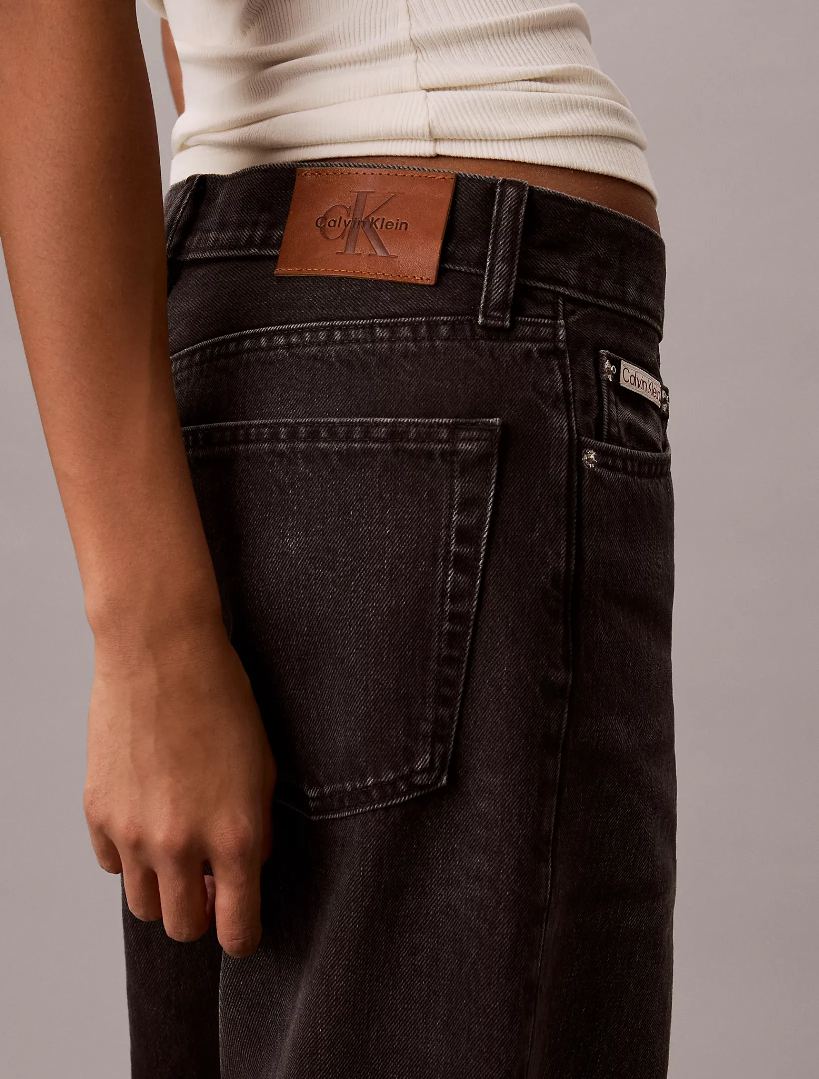 • Metallelemente und Leder-Badge mit Calvin Klein Logo