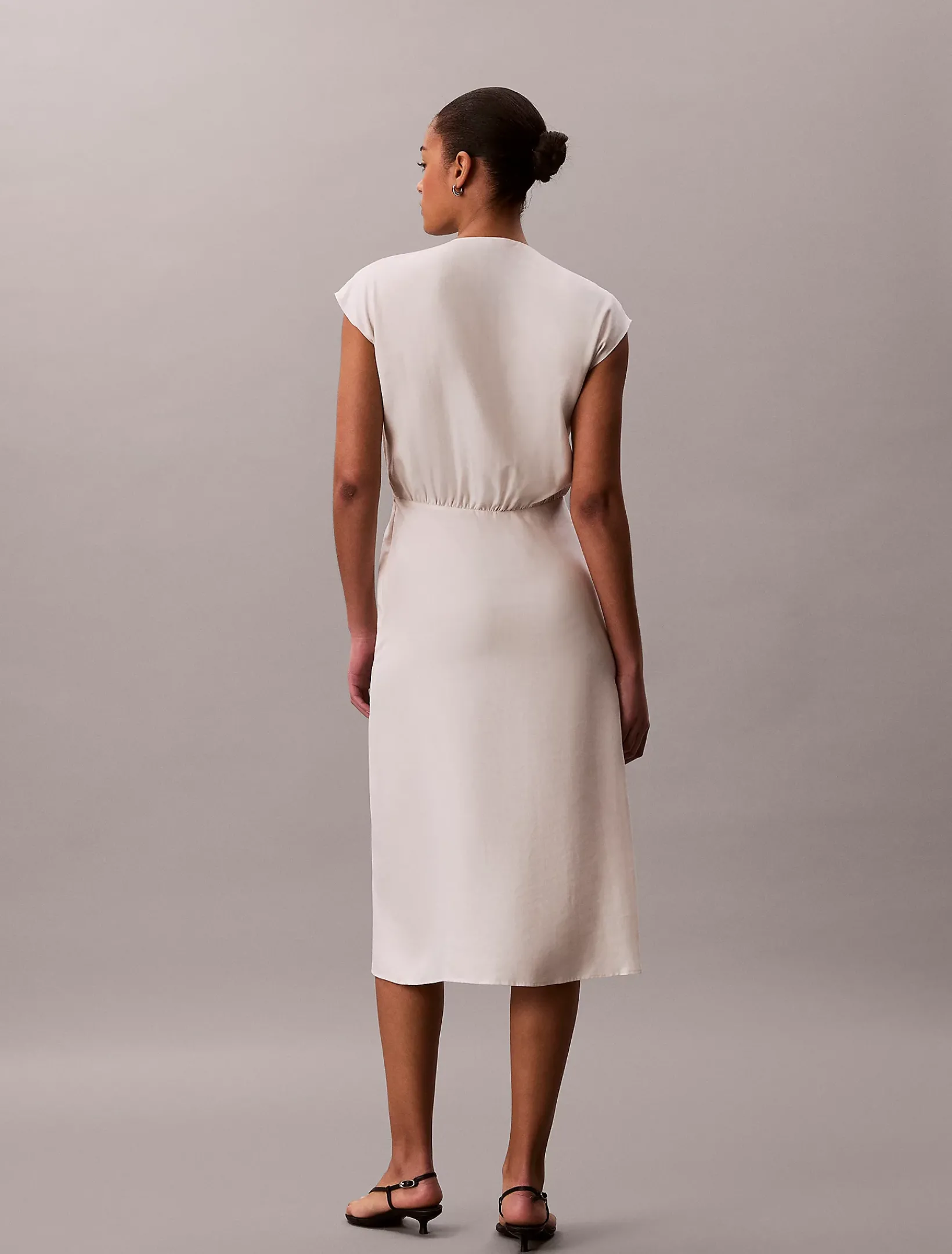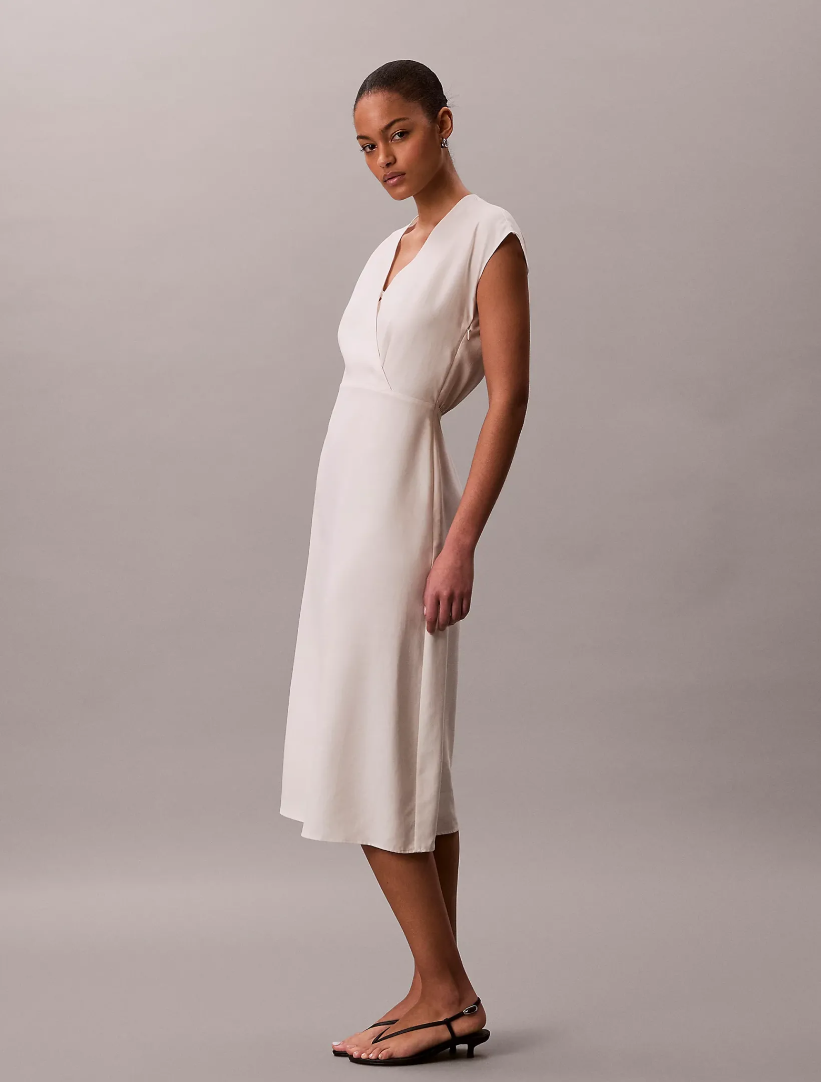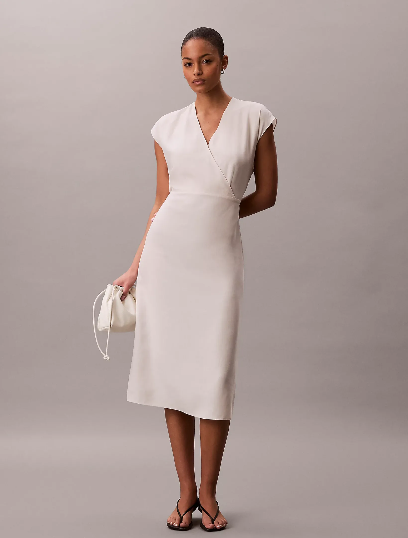 Dieses frühlingshafte Kleid mit gefaltetem V-Ausschnitt und Flügelärmeln sorgt für lässige Looks für die Arbeit und das Wochenende.