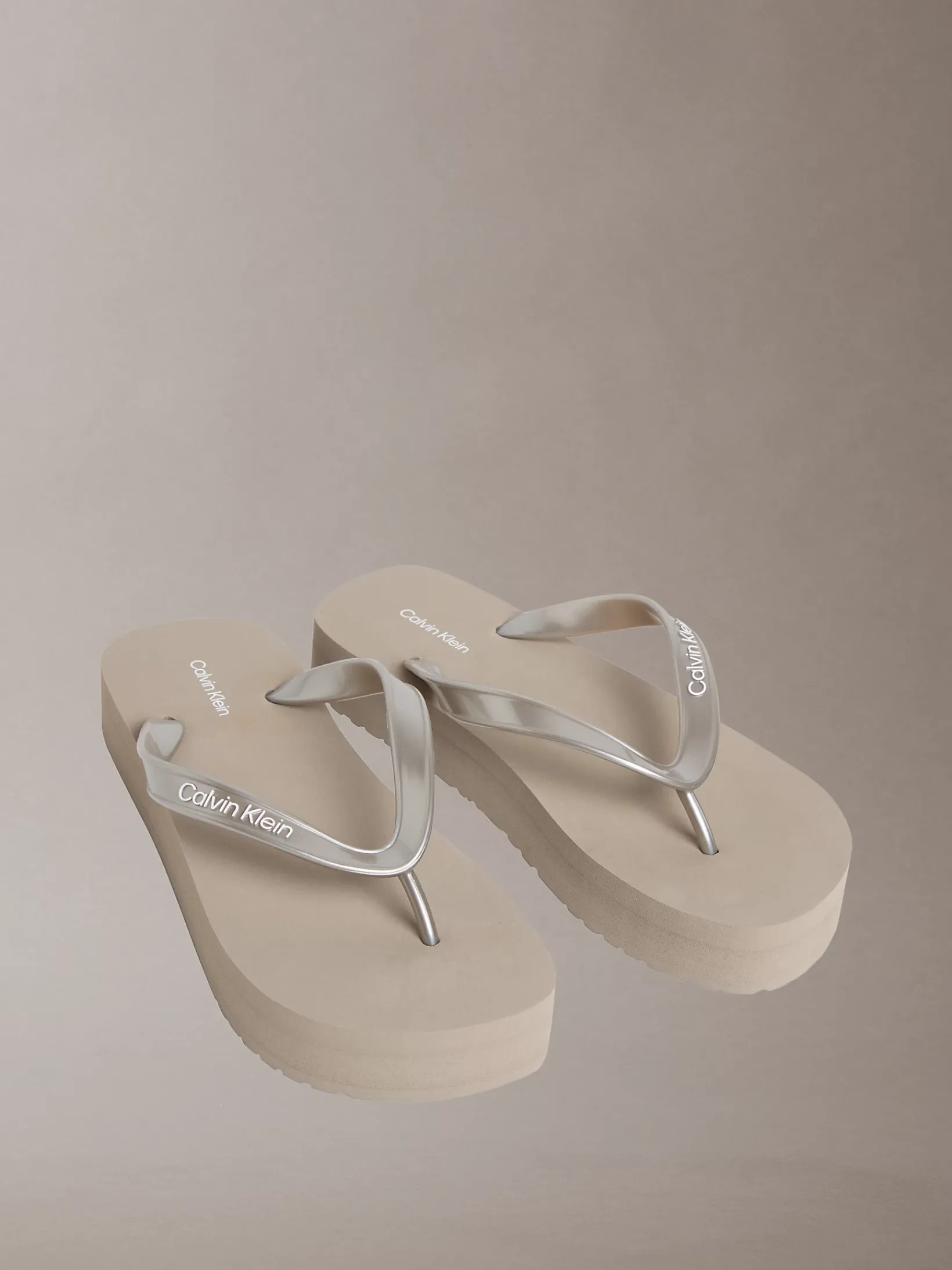 • Calvin Klein Logo an Riemen, Fußbett und Sohle
