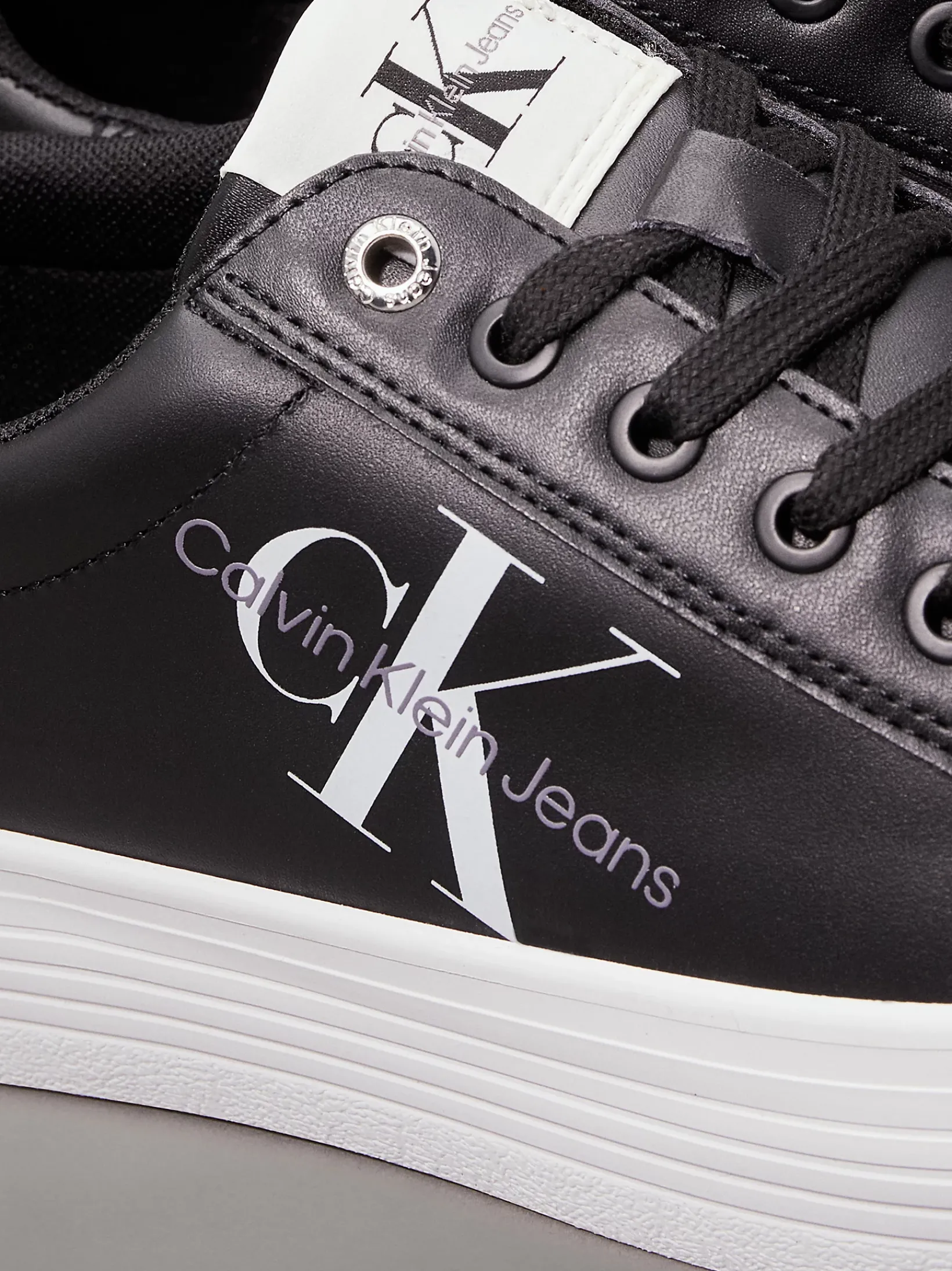 • Calvin Klein Logo auf der Lasche, dem Absatz und der Seite