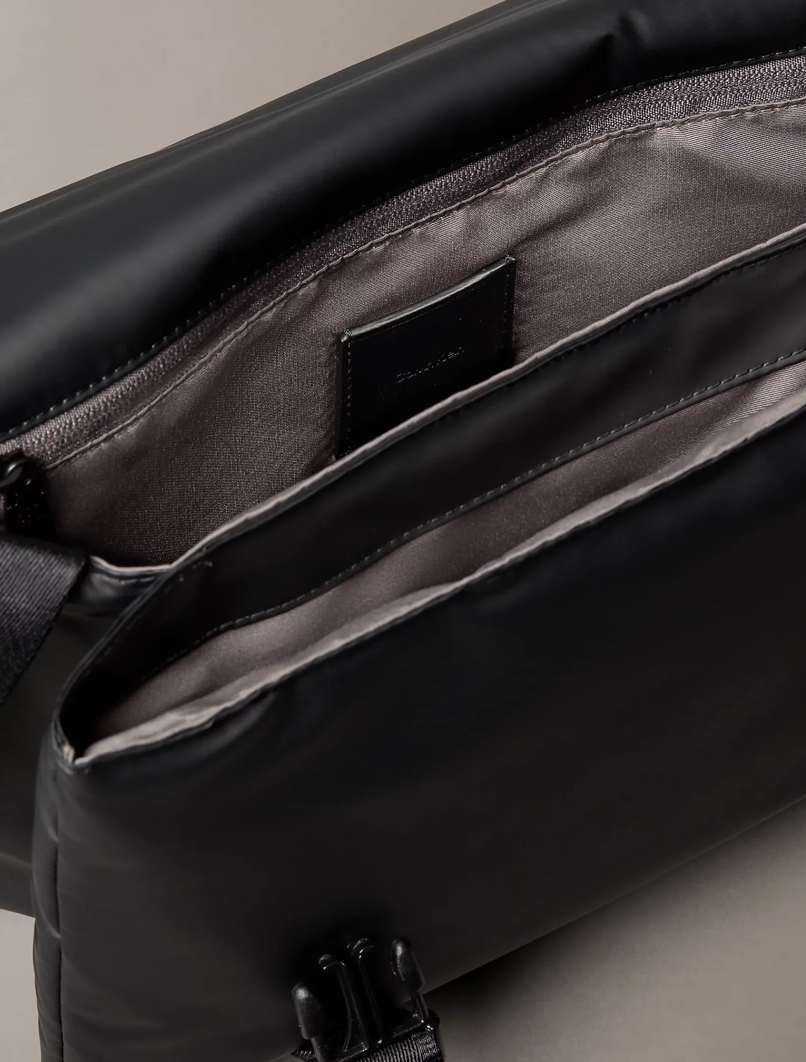 • Calvin Klein Logoaufnäher auf der Klappe