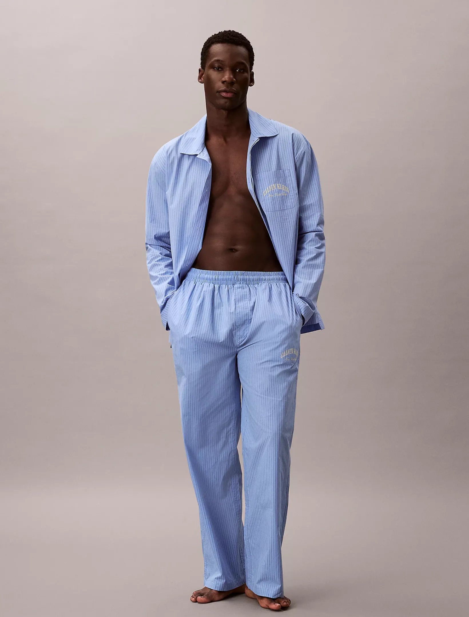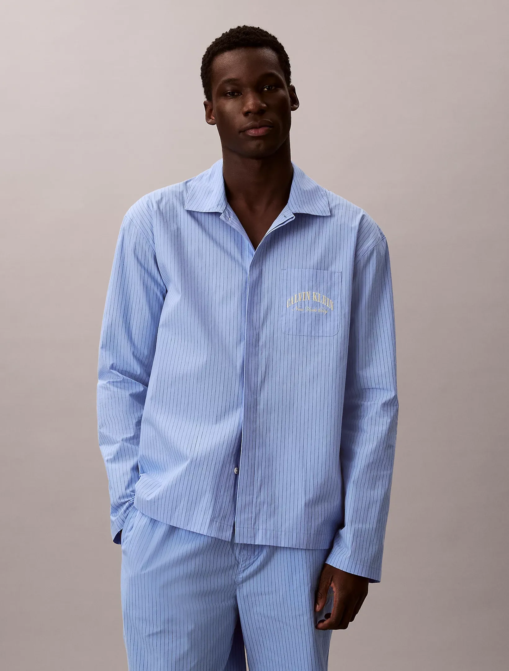 Dieses Pyjama-Set ist auf der Brust und am Bein mit dem New York City-Logo bestickt.