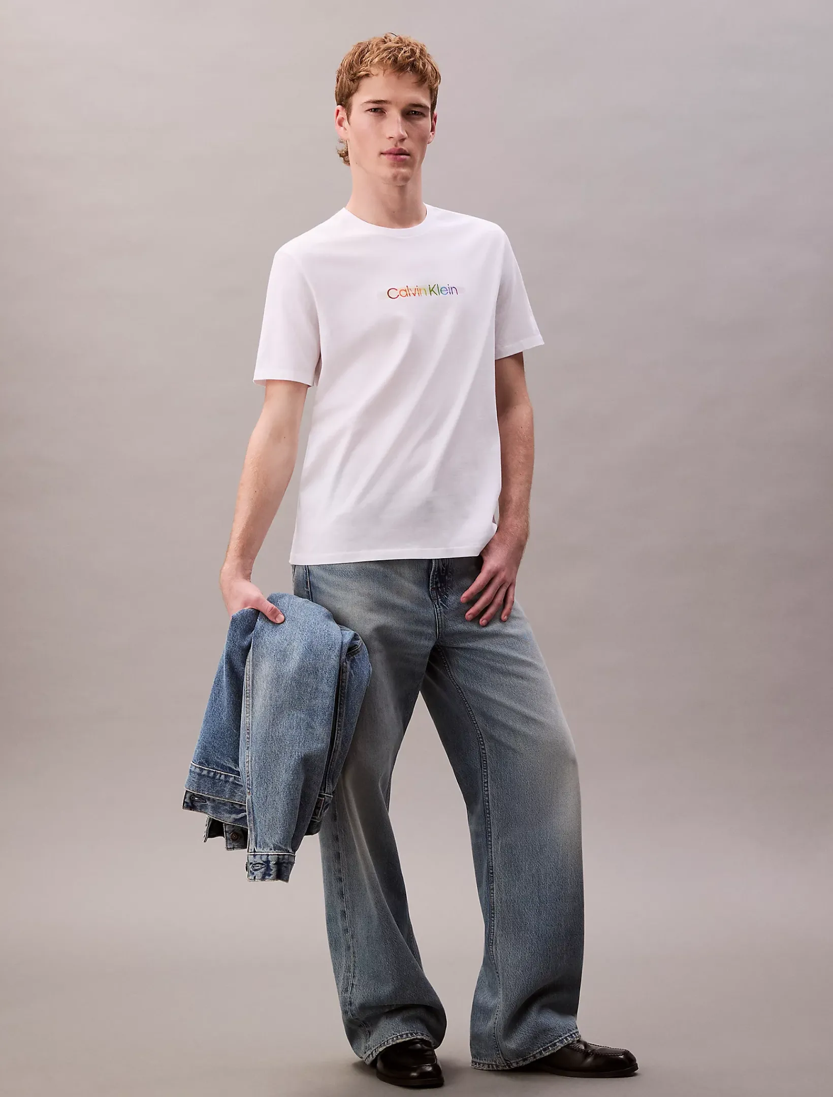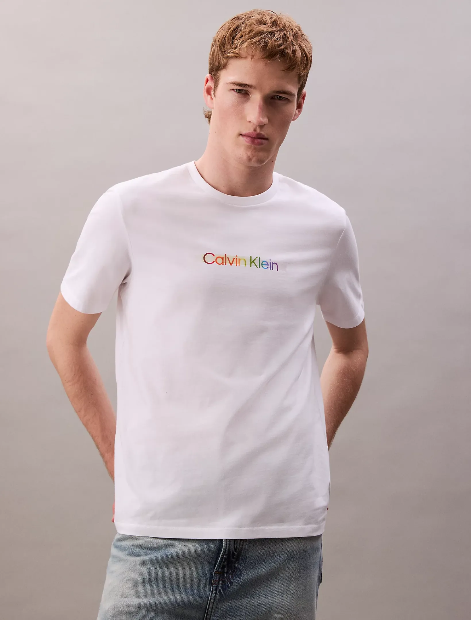 • glänzend beschichtetes Calvin Klein Regenbogen-Logo auf der Brust
