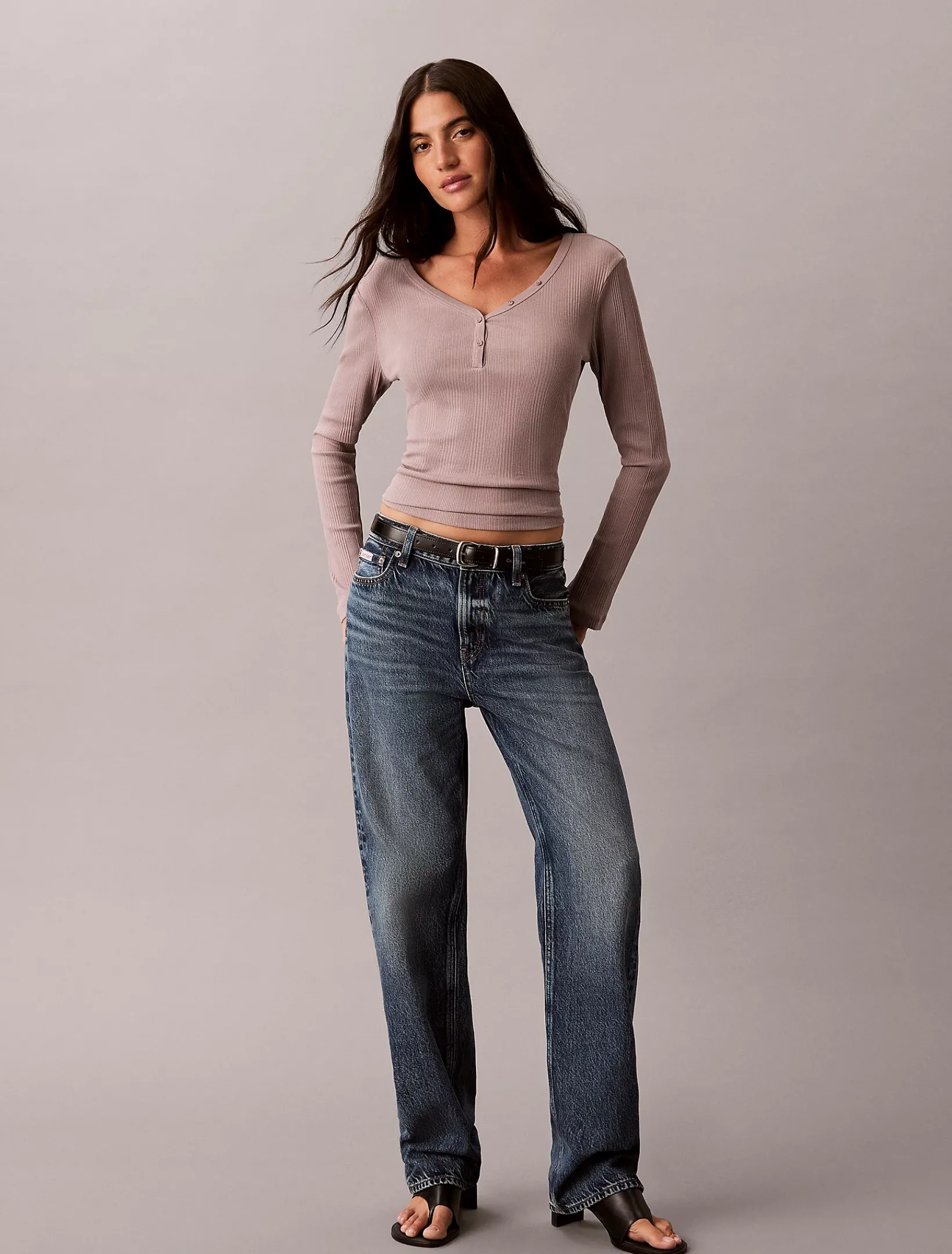 Dieses Henley-Top ist ein lässiger Klassiker aus weichem Rippstrick-Jersey mit dezenten Knöpfen am Ausschnitt.