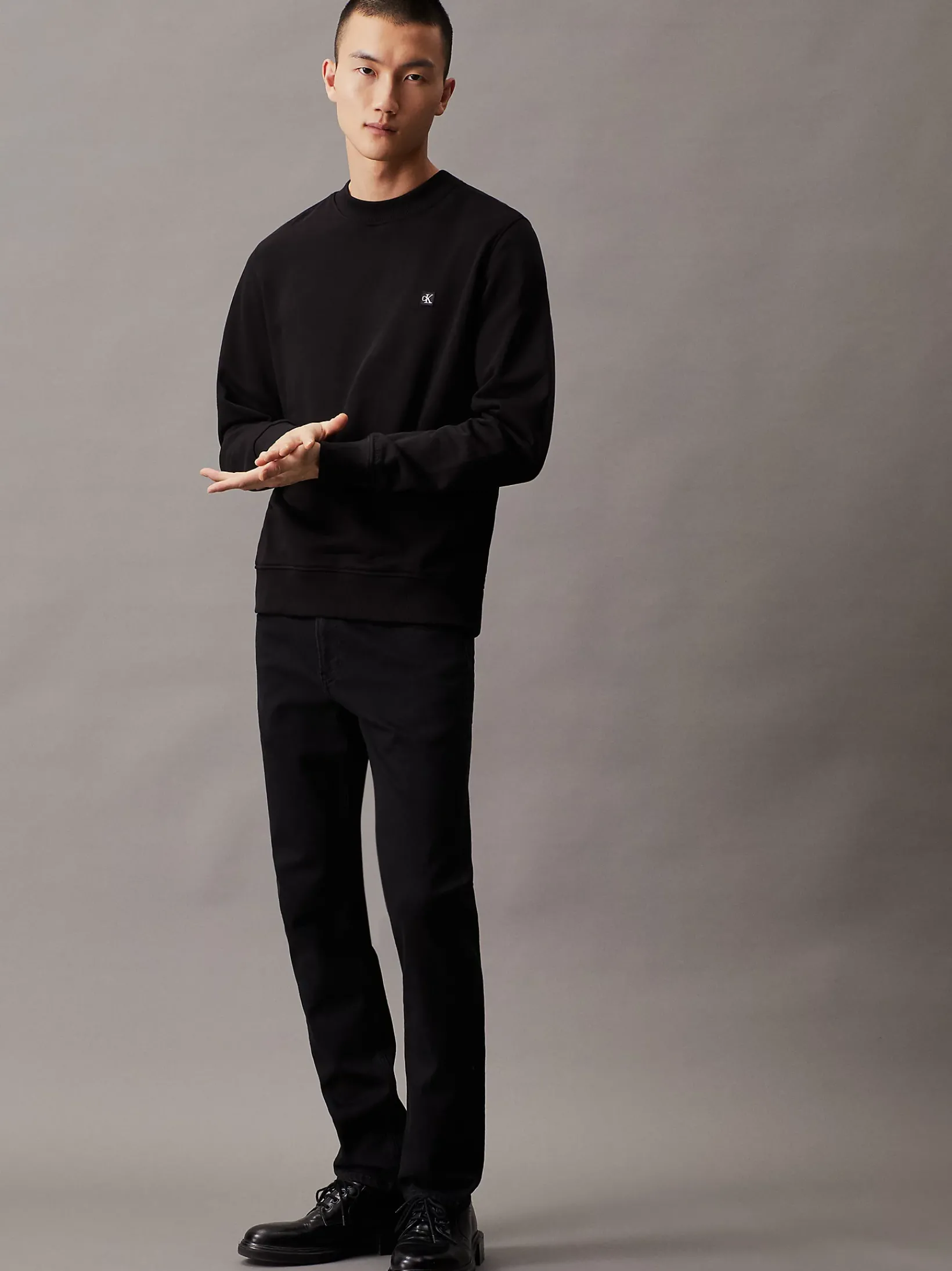 • Metallelemente und Leder-Badge mit Calvin Klein Logo