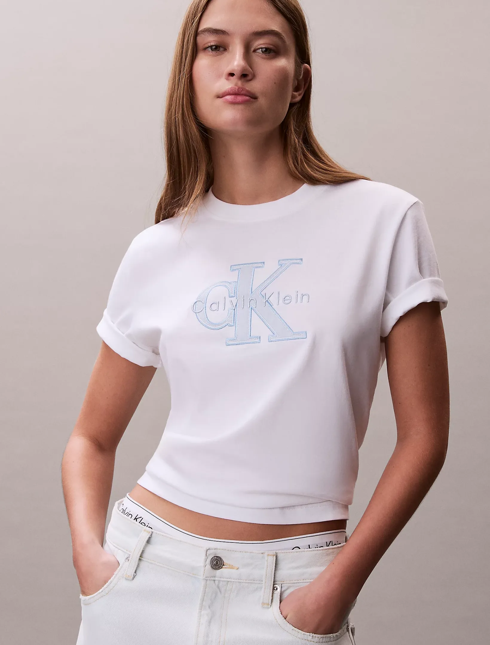 • Calvin Klein Monogramm-Applikation auf der Brust