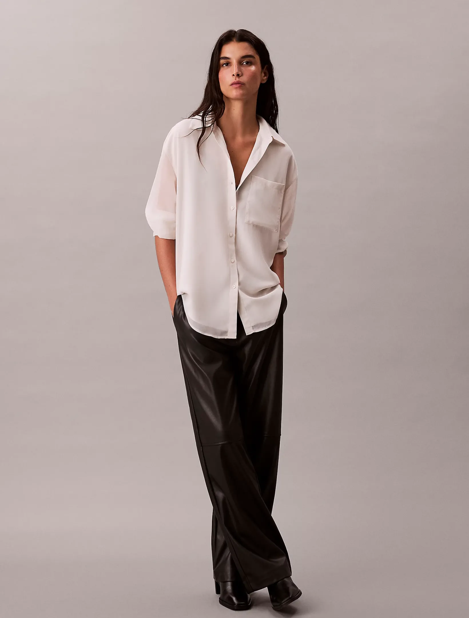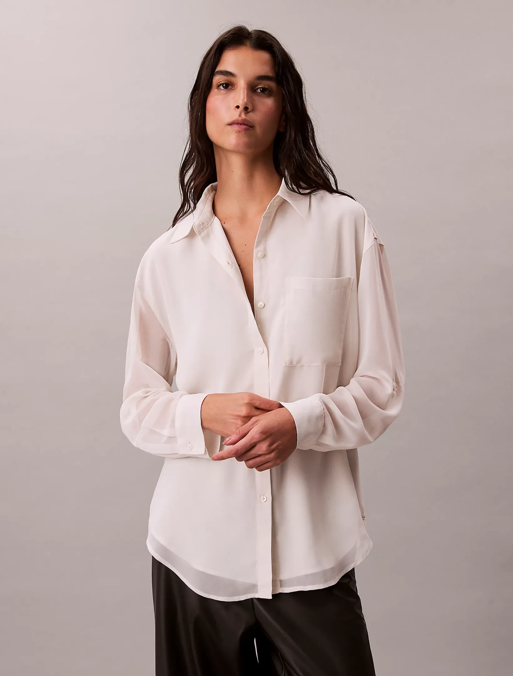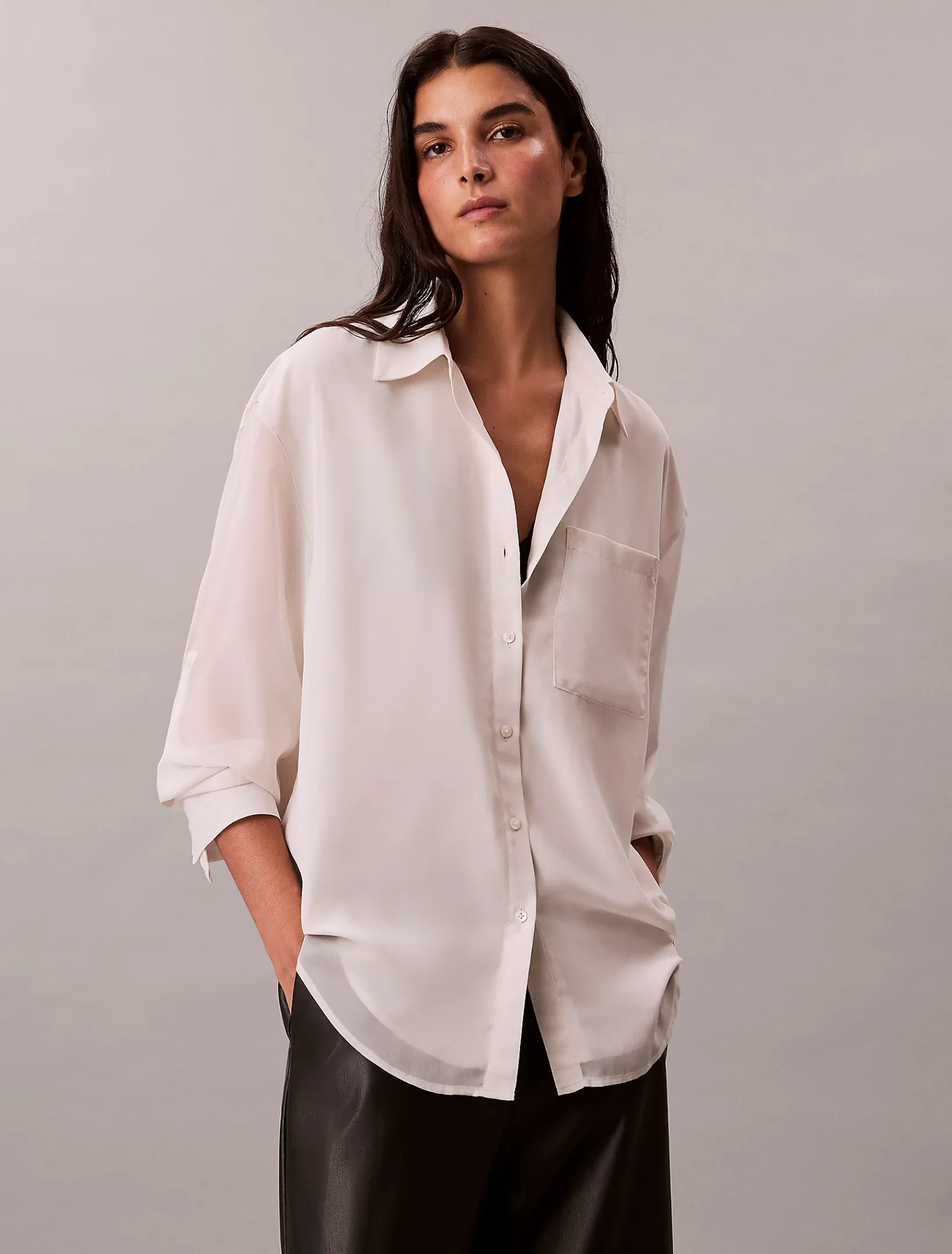 • spitzer Kragen und Roll-Tap-Ärmel