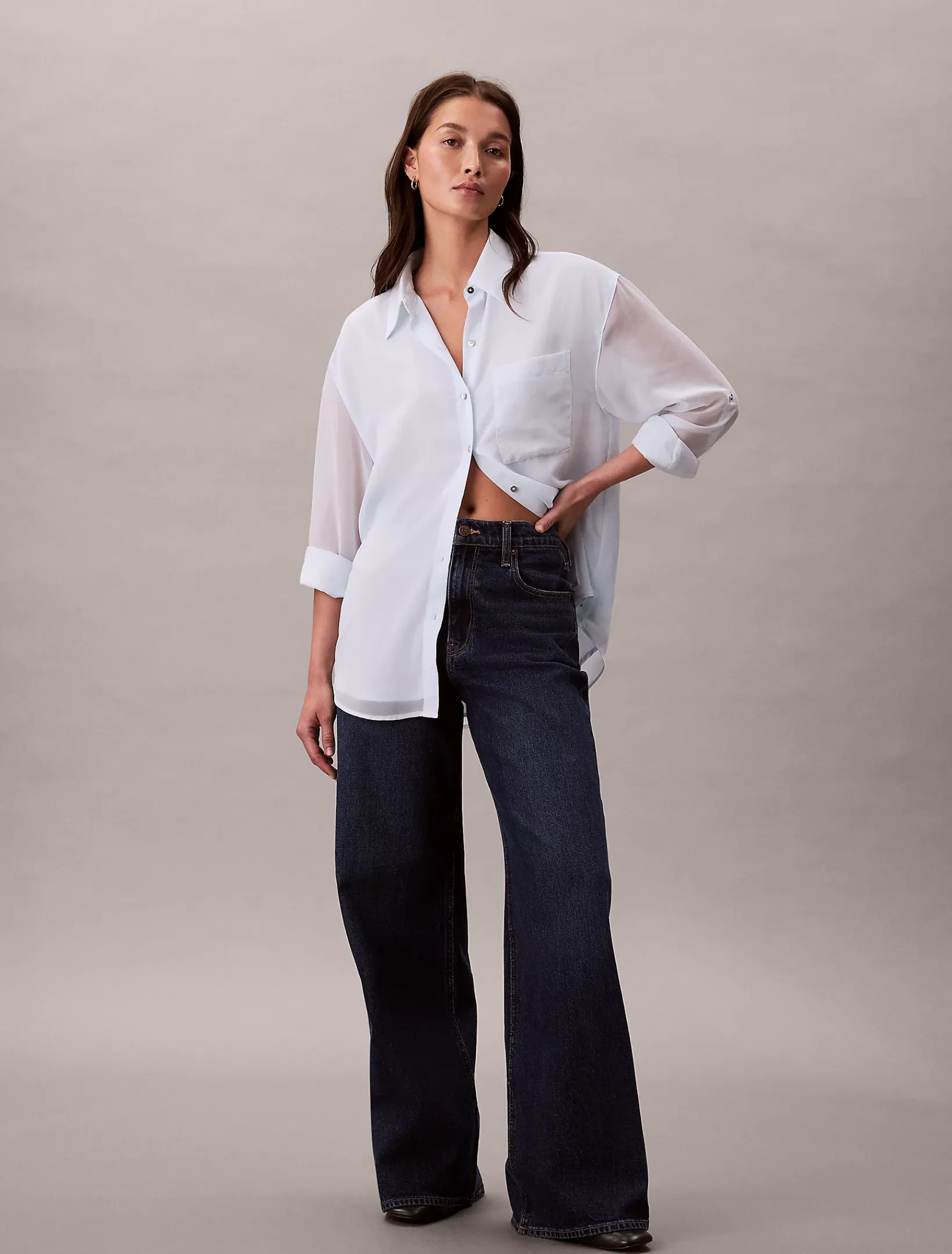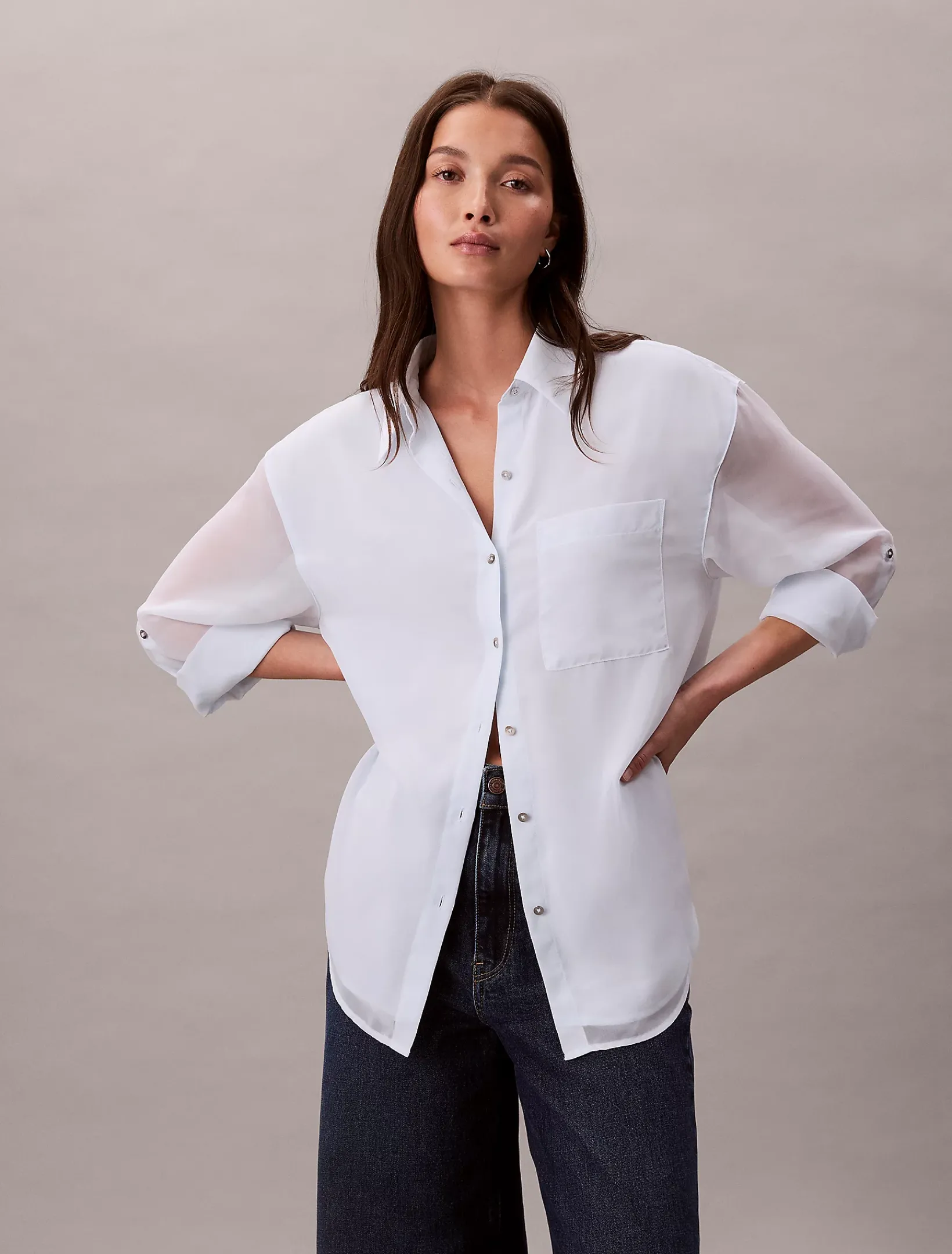 • spitzer Kragen und Roll-Tap-Ärmel