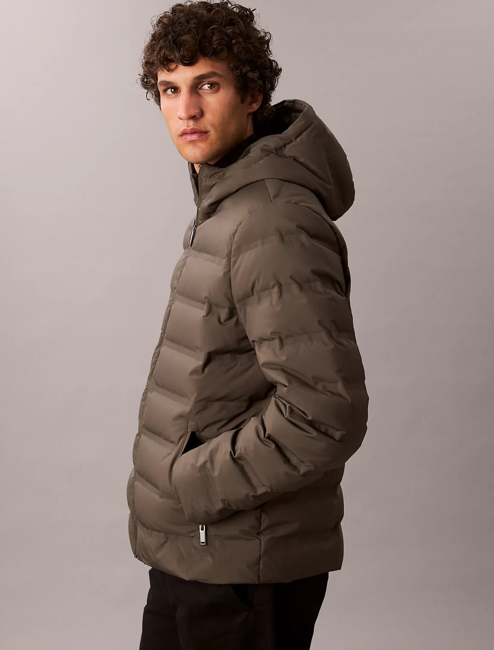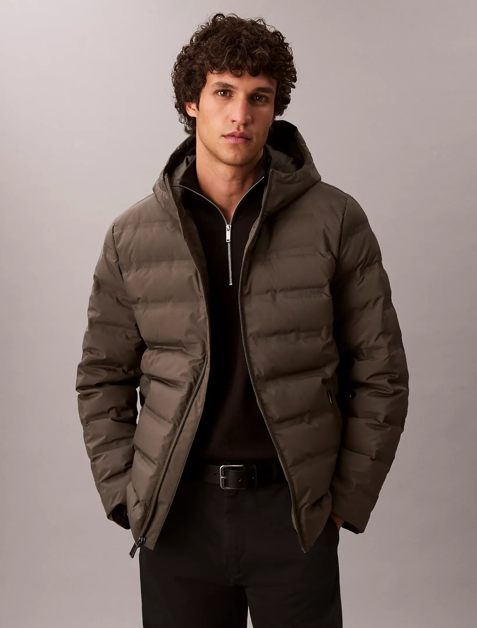 • Kapuze und hoher Stehkragen