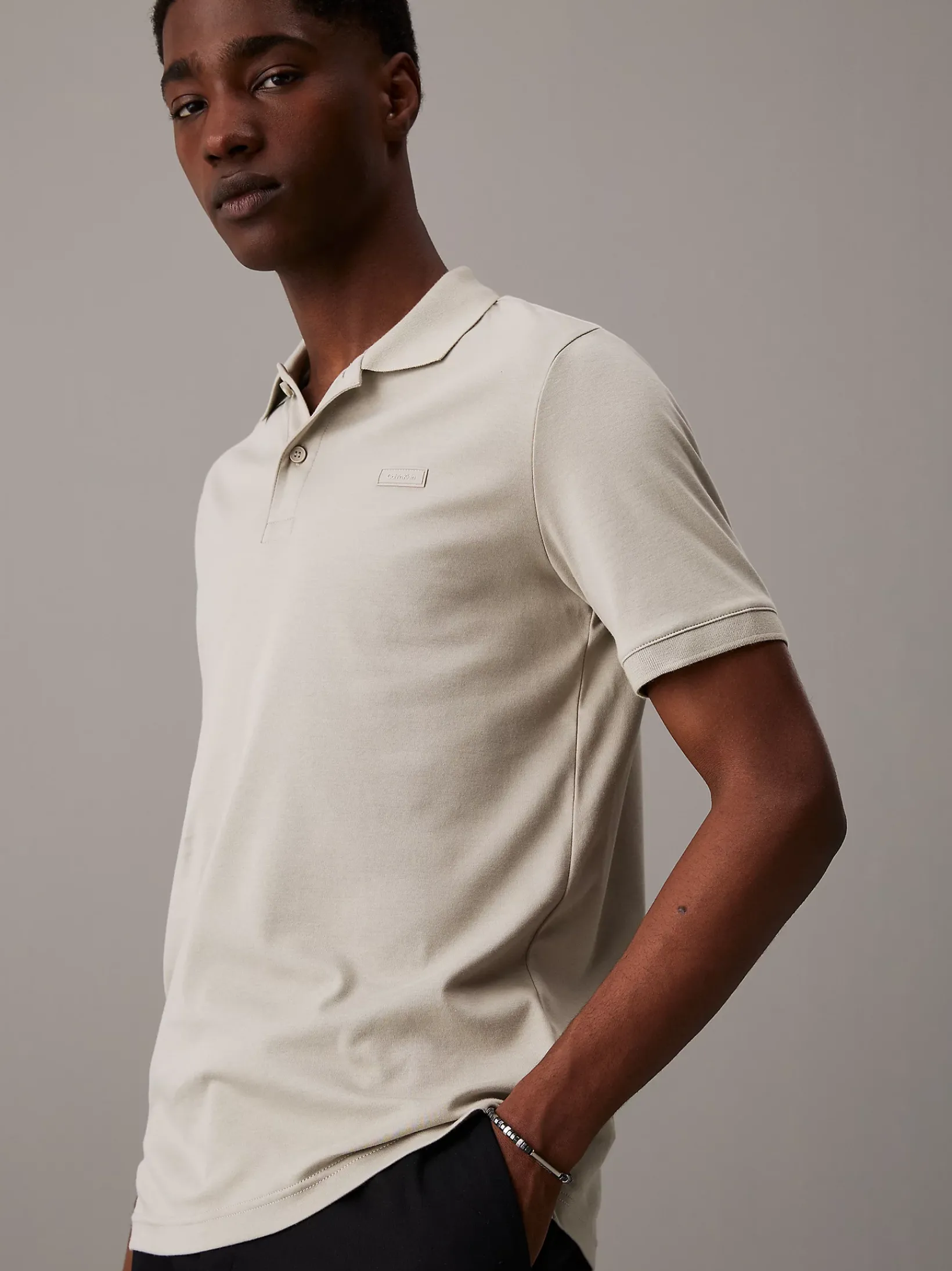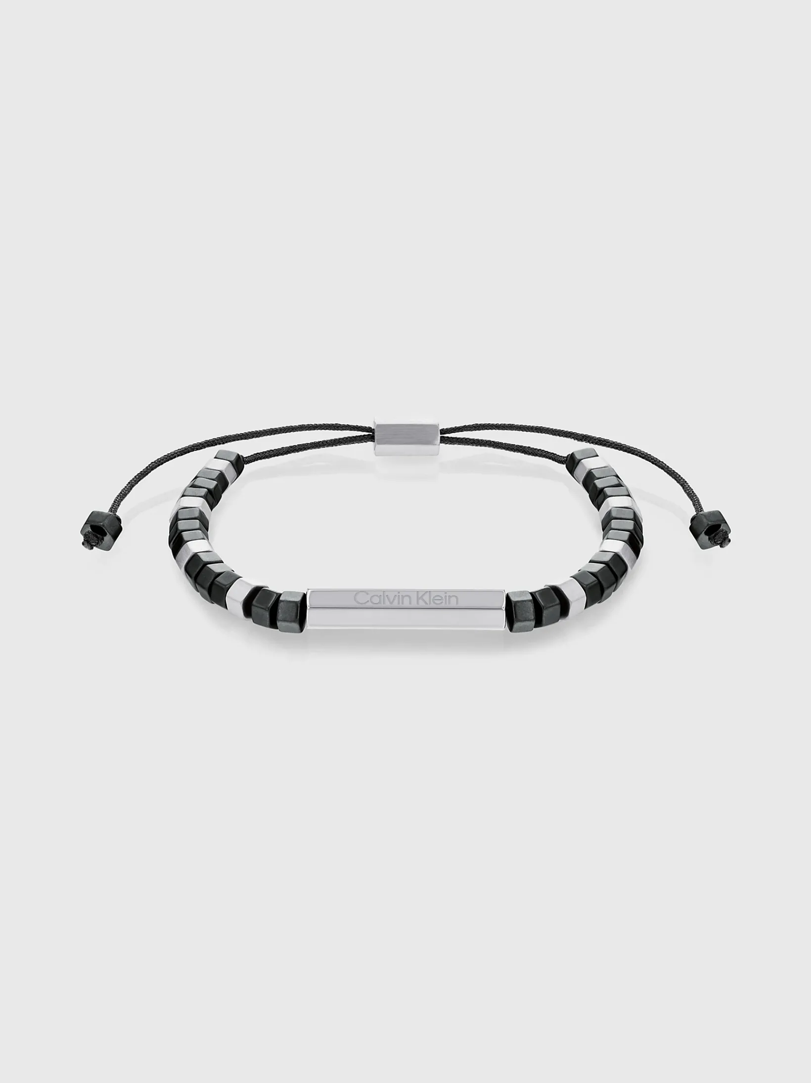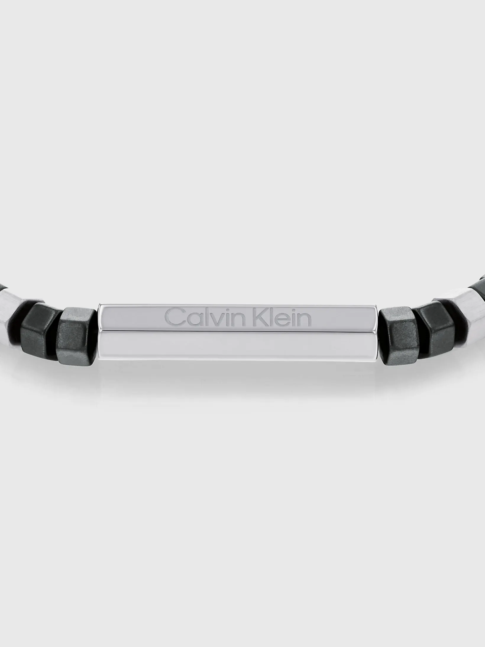 Geometrische Perlen und eine Edelstahlplakette mit geätztem CK Logo machen dieses verstellbare Armband zu einem lässigen Einzelstück oder perfekt für einen Lagenlook.