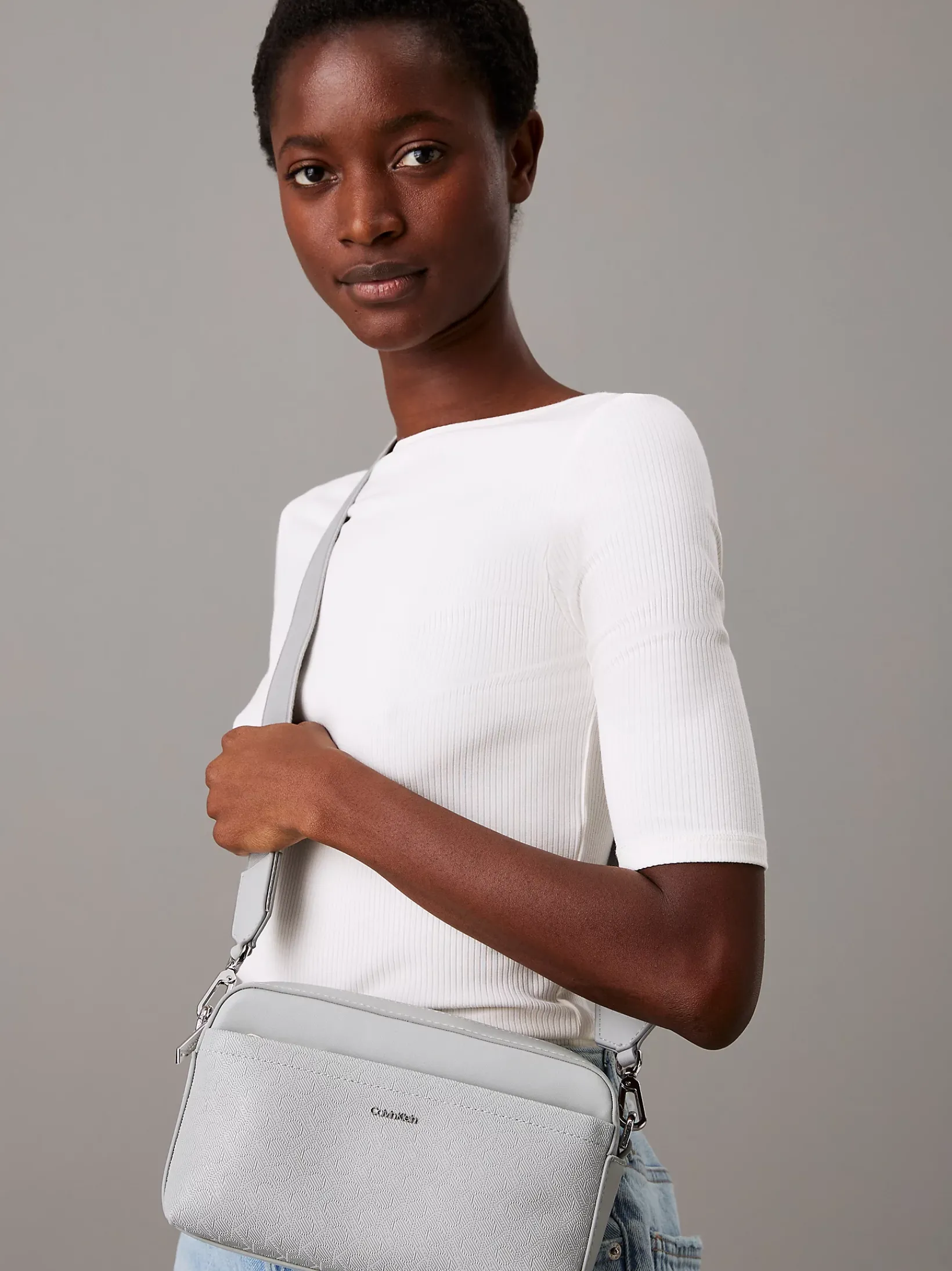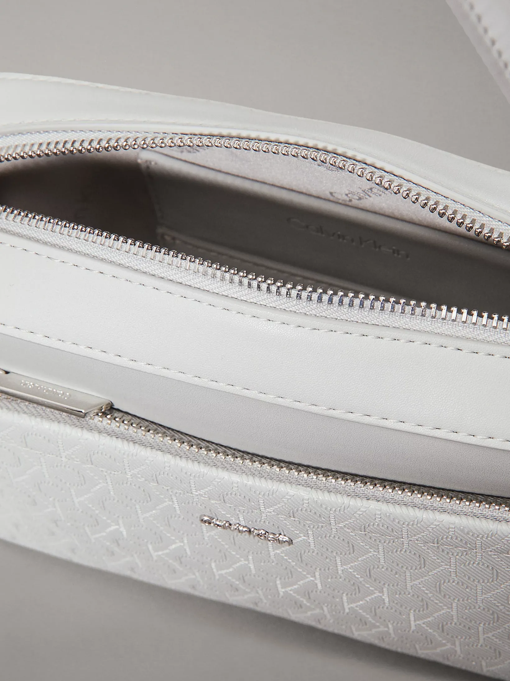 • silbern glänzendes Calvin Klein Metall-Logo auf der Vorderseite